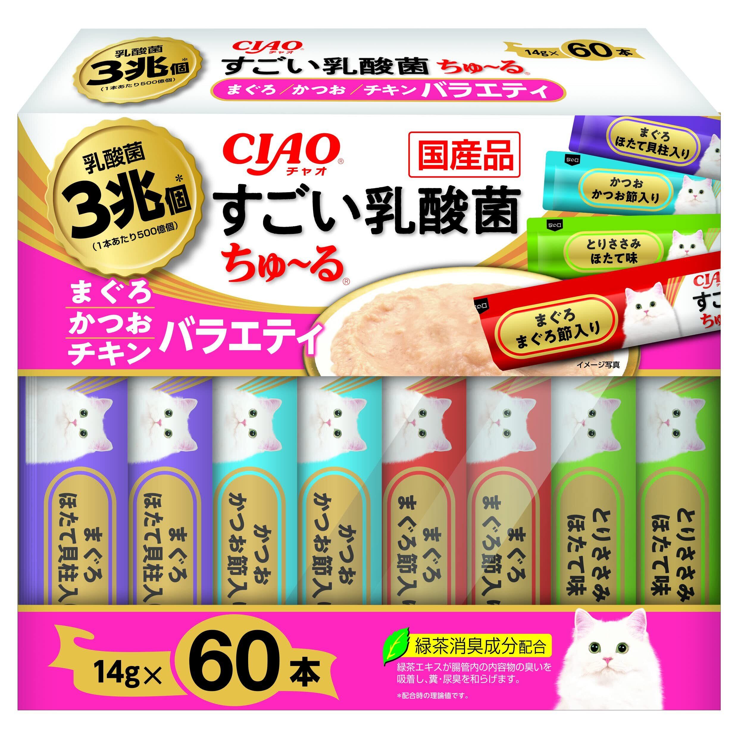 チャオ (CIAO) すごい乳酸菌ちゅ~る まぐろ・かつお・チキンバラエティ 60本