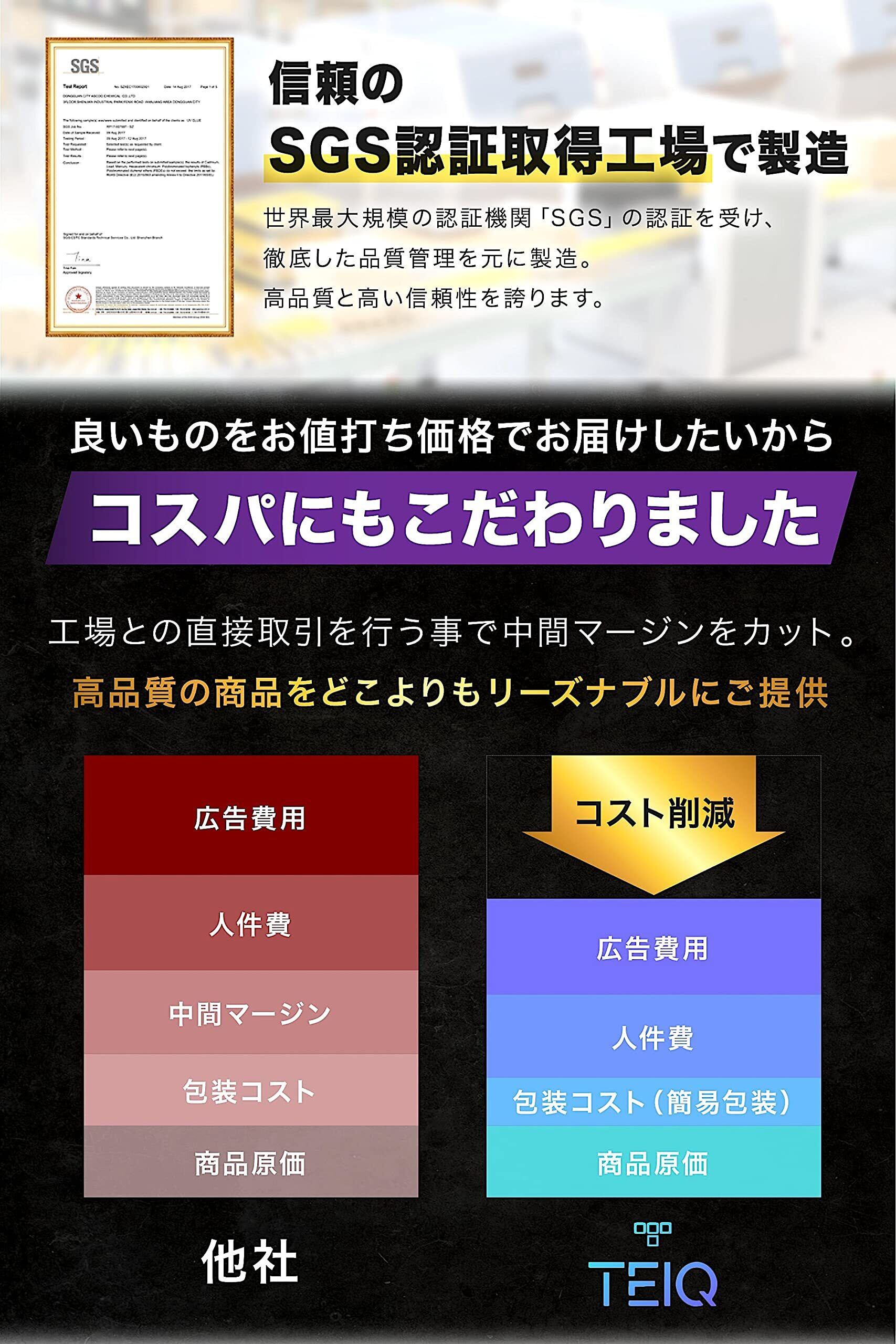 【 信頼度の高いジャパンクオリティ 日本製 旭硝子採用 】 TEIQ の iPhone13プロマックス 用の ガラスフィルム は他社が使っている 外国製の粗悪なガラス ではなく、品質グレードAAAの『高品質』の日本メーカー 旭硝子製の 硬度 10H の 強化ガラスフィルム を採用しています。 透過率は『99.9%』と何もつけていない状態と間違うほどの透明感を実現。 さらに、指紋や汚れが付着しにくい『 指紋防止 コーティング』を施し、滑らかな表面となっているので汚れから守りながらもより良い操作性を実現した 液晶保護フィルム です。