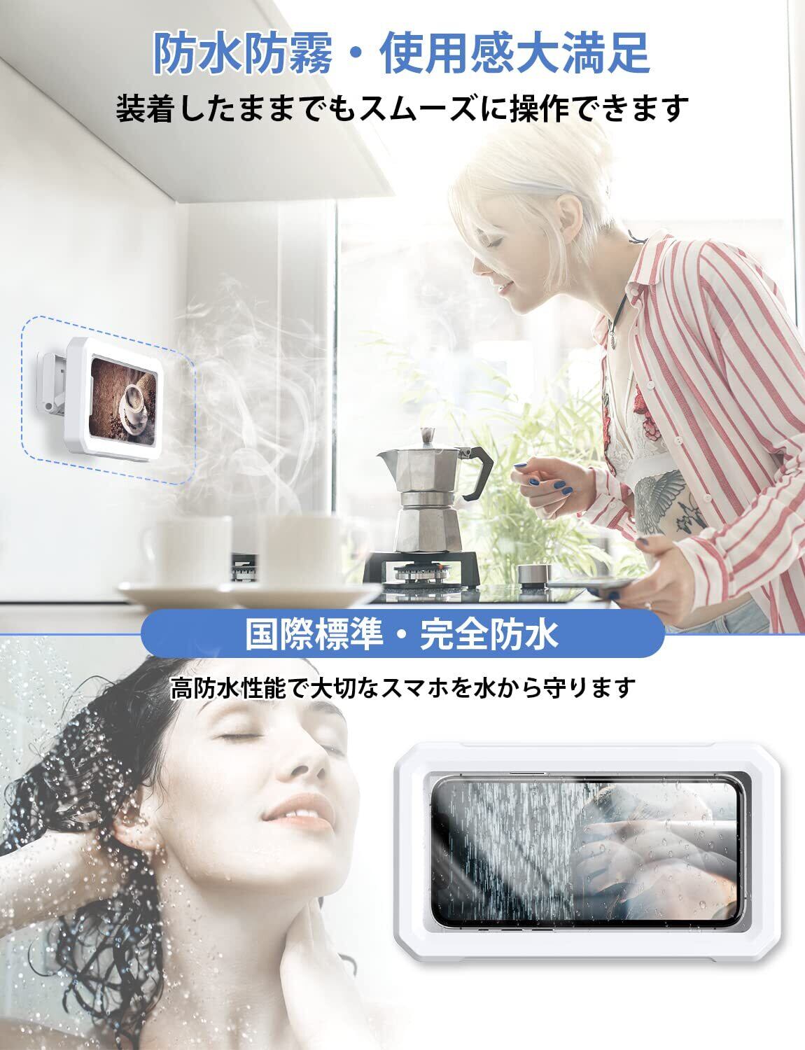 【防水防霧高解像度スクリーン&密封性GOOD!】 ABS素材で作られて表面は防水コーティングが施し、ボックス内側に密着防水シリコン付きなので、水しぶきがかかっても、こぼしても、防水ボックスはスマホをしっかりカバーします。そして、透明な新版PET防曇フィルムを高品質TPU素材を採用し「防曇、99%の光透過率、霧なし、高解像度スクリーン、高感度スクリーン」入浴中に霧が発生しても、スマホ画面の鮮明さに影響を与えません。 360°に水、霧、水蒸気をを完璧にシャットアウトして入浴やシャワー時に自由に使えます。ご注意防止機能付きますのでお風呂でも使用できますが、完全に水に浸さないでください。