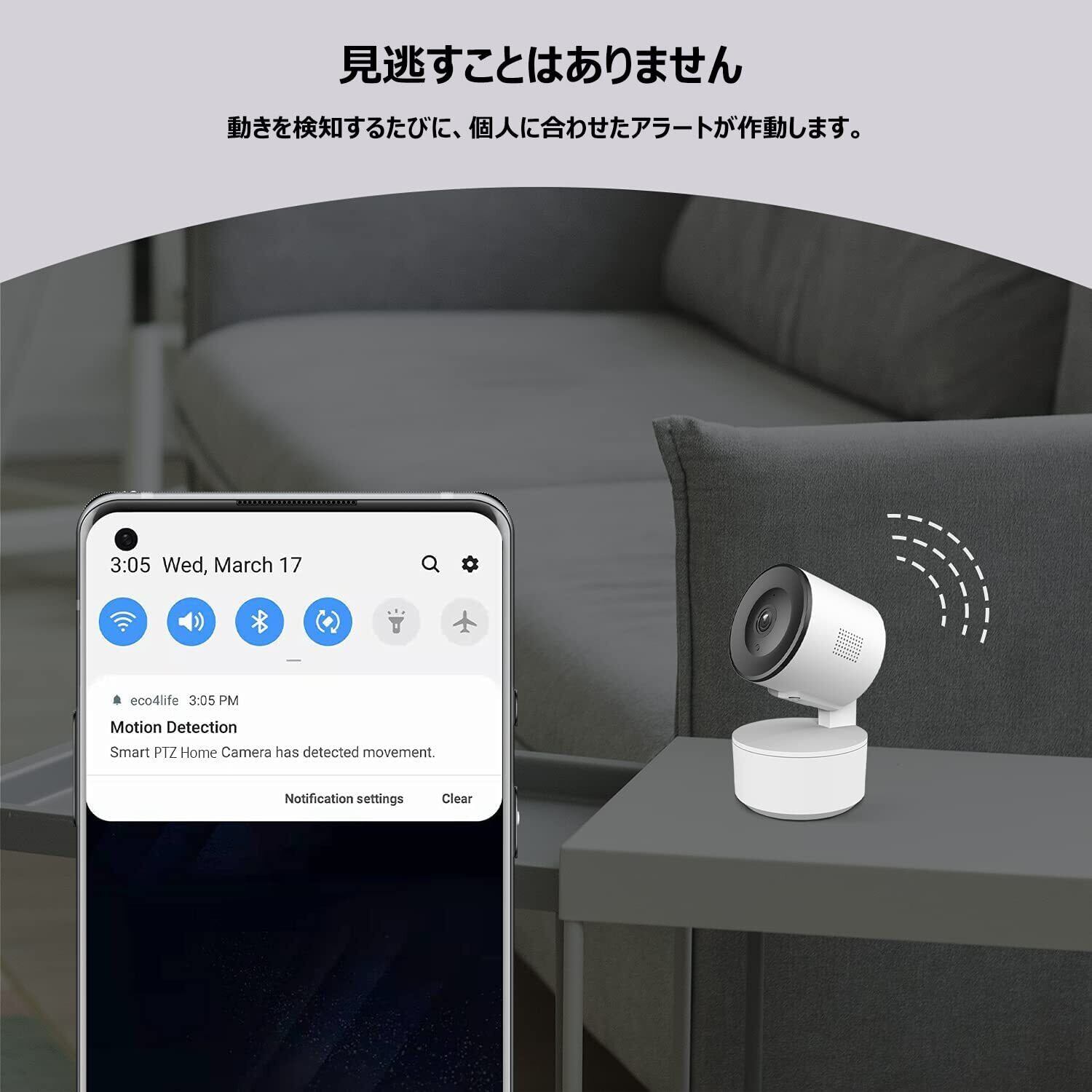eco4life 1080p Wi-Fi PTZIPカメラ。 簡単なセットアップ、HDLivingストリーミング。 アプリによるリモコン。 24時間年中無休のモーション検出と通知。 夜間視力。 内蔵マイクとスピーカー、双方向オーディオ。 あなたの家、オフィス、店のための良い選択