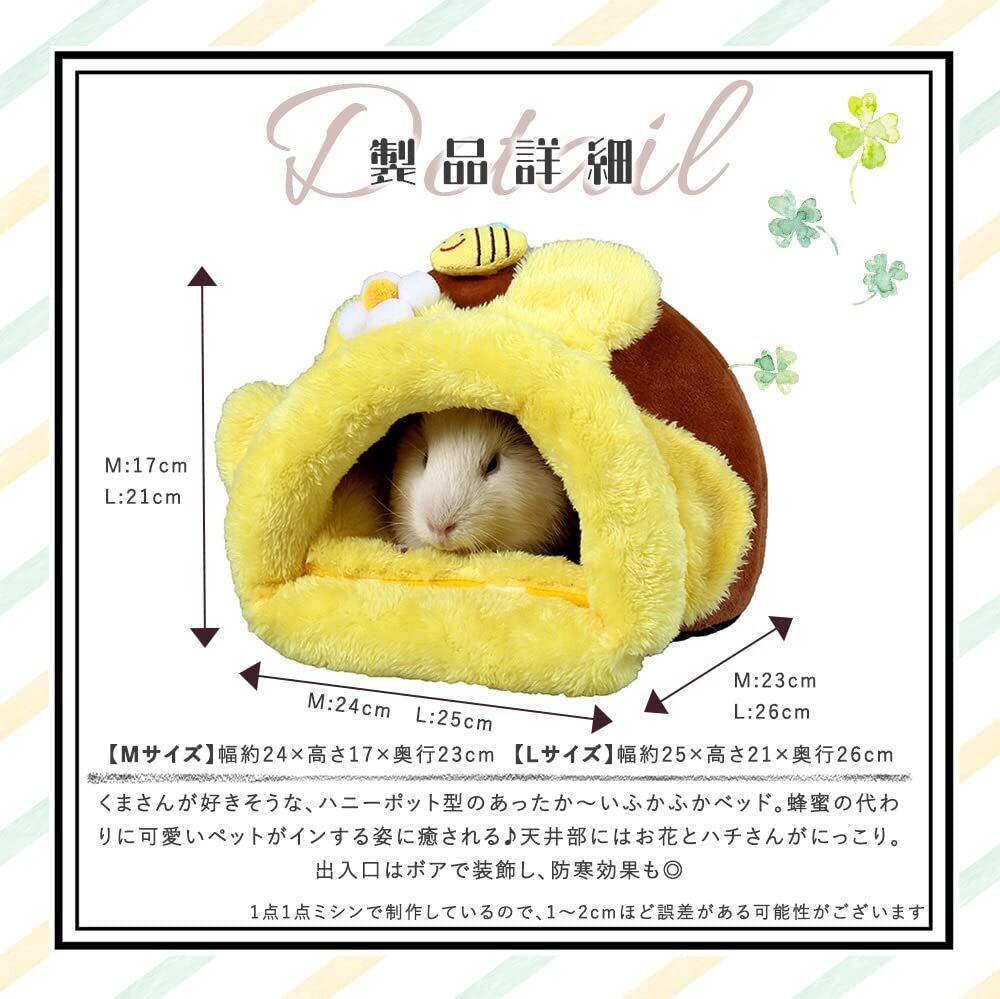 くまさんが好きそうな、ハニーポット型のあったか~いふかふかベッド。蜂蜜の代わりに可愛いペットがインする姿に癒される天井部にはお花とハチさんがにっこり。出入口はボアで装飾し、防寒効果も◎