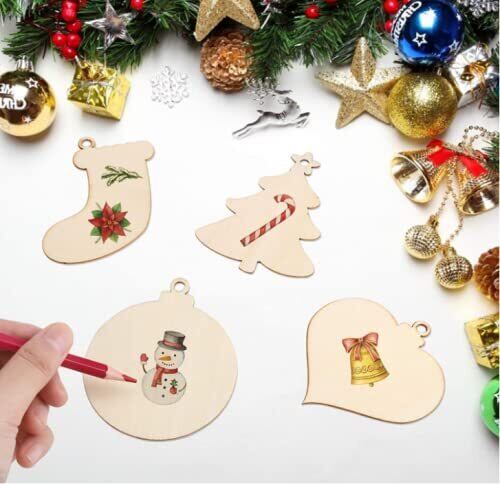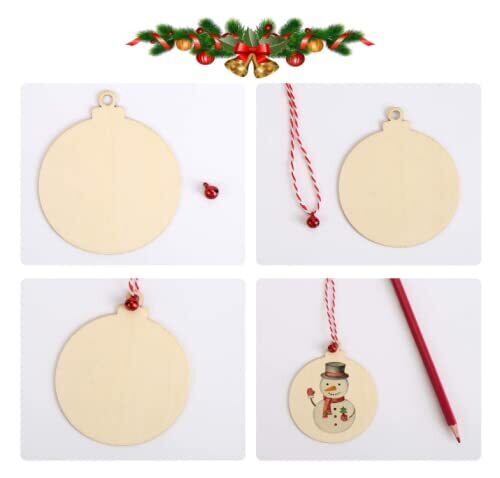 DERAYEE クリスマス 飾り オーナメント クリスマスツリー飾り 木製 20pcs 無地 吊り DIY ベル付き 麻糸10m 原木色 ストラップ XMAS