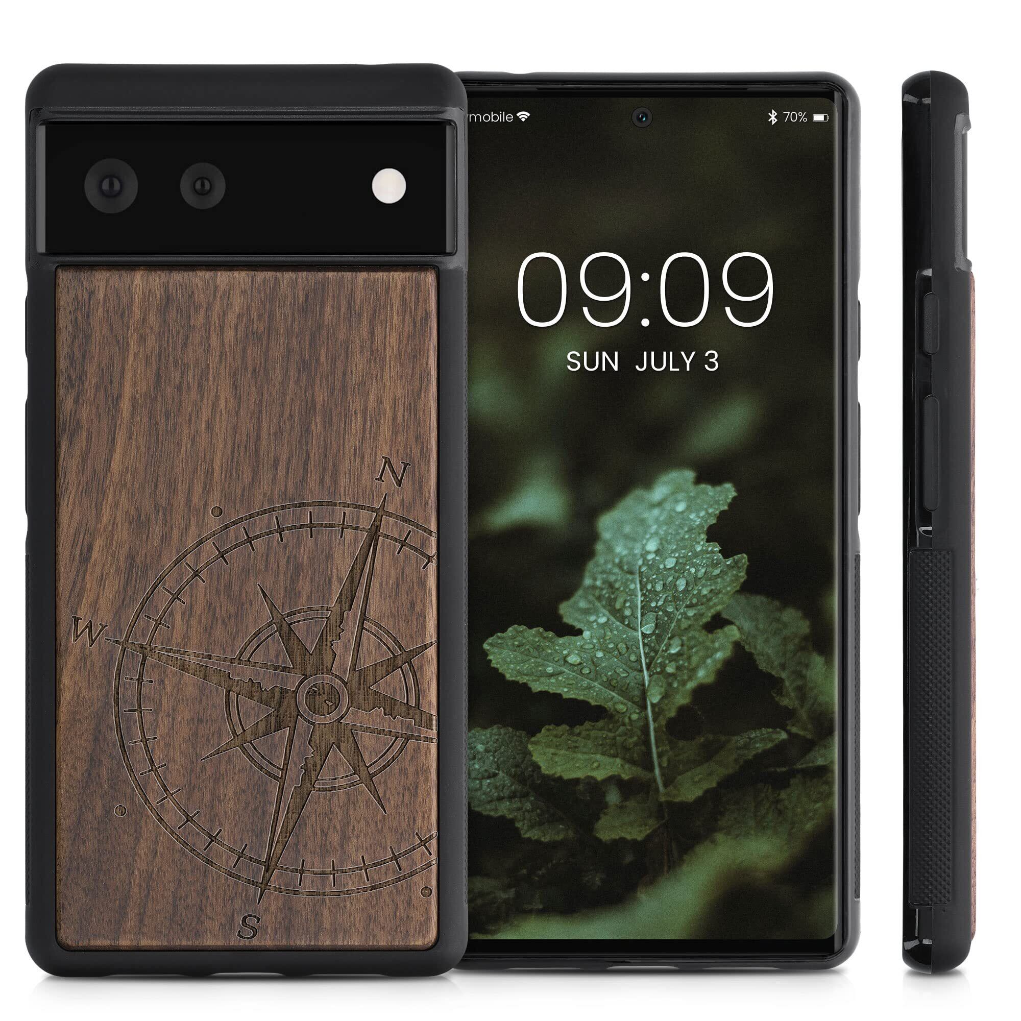 kwmobile スマホケース Google Pixel 6対応 ケース - 携帯ケース TPUバンパー ナチュラル 木製 レトロコンパスデザイン