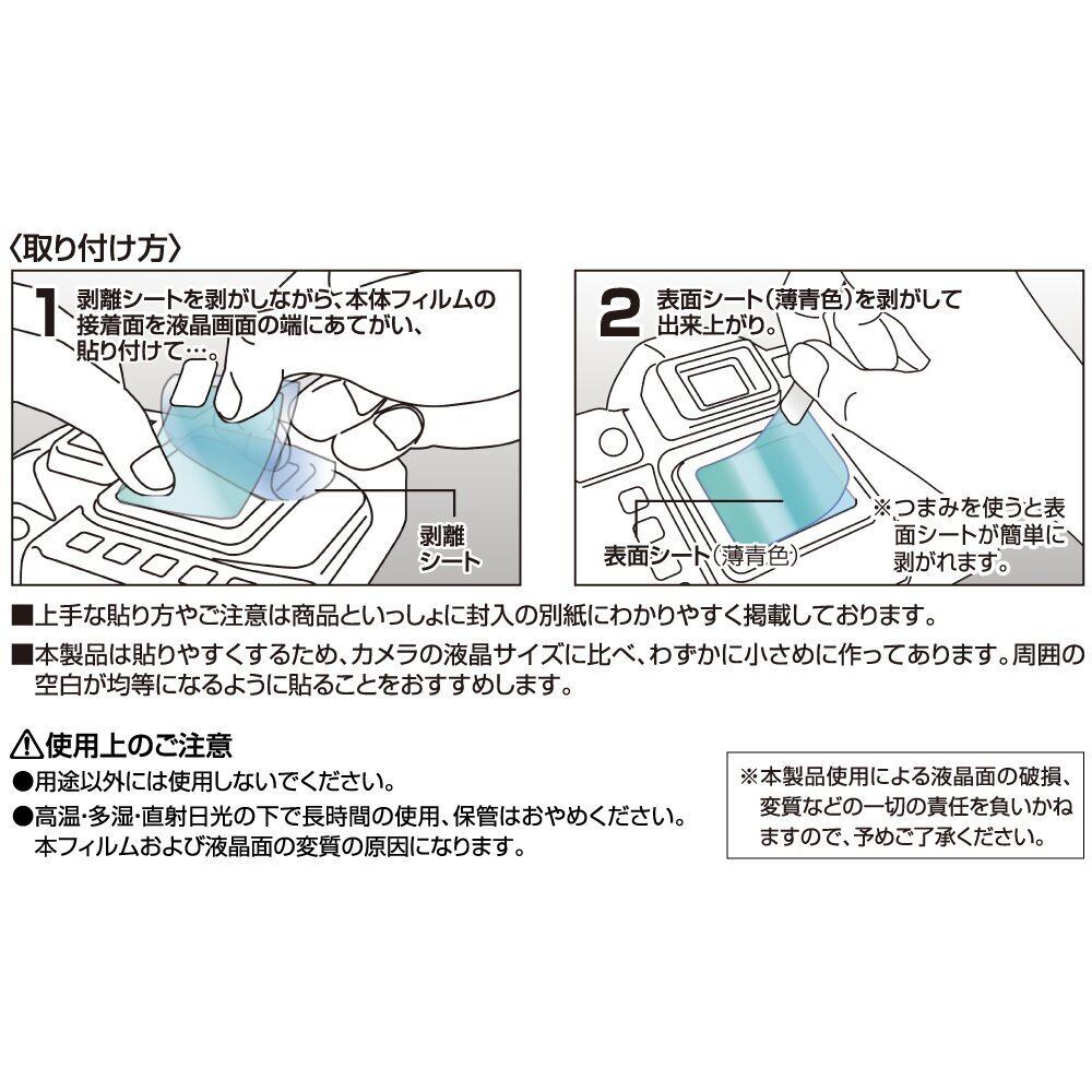 スタイル:α7IV用 「Kenko 液晶プロテクター」は、デジタルカメラの液晶画面をキズ・汚れから守る、カメラ用の液晶保護フィルムです。専用サイズで設計されたフィルムは、ハードコート層の高い表面硬度(3H)で液晶画面をキズから守り、フィルム自体も擦りキズなどの傷がつきにくく長くお使いいただけます。また、反射が少ないARハードコートフィルムの採用により、液晶画面をしっかり守りながら、屋外での視認性も確保しています。さらに表面に防汚加工を施すことでフィルムに汚れがつきにくくなっています。指紋や皮脂汚れなどが付いた場合も、クリーニングクロスなどで簡単に拭き取ることができます。貼り付けも簡単。独自の3層構造の採用で、貼り付け前に付属の表面保護膜は色付けされており、貼り付けが簡単。最後に青色の表面保護フィルムをはがせば、クリアな見え味を実現します。ケンコーの液晶プロテクターは安心の国内一貫生産です。