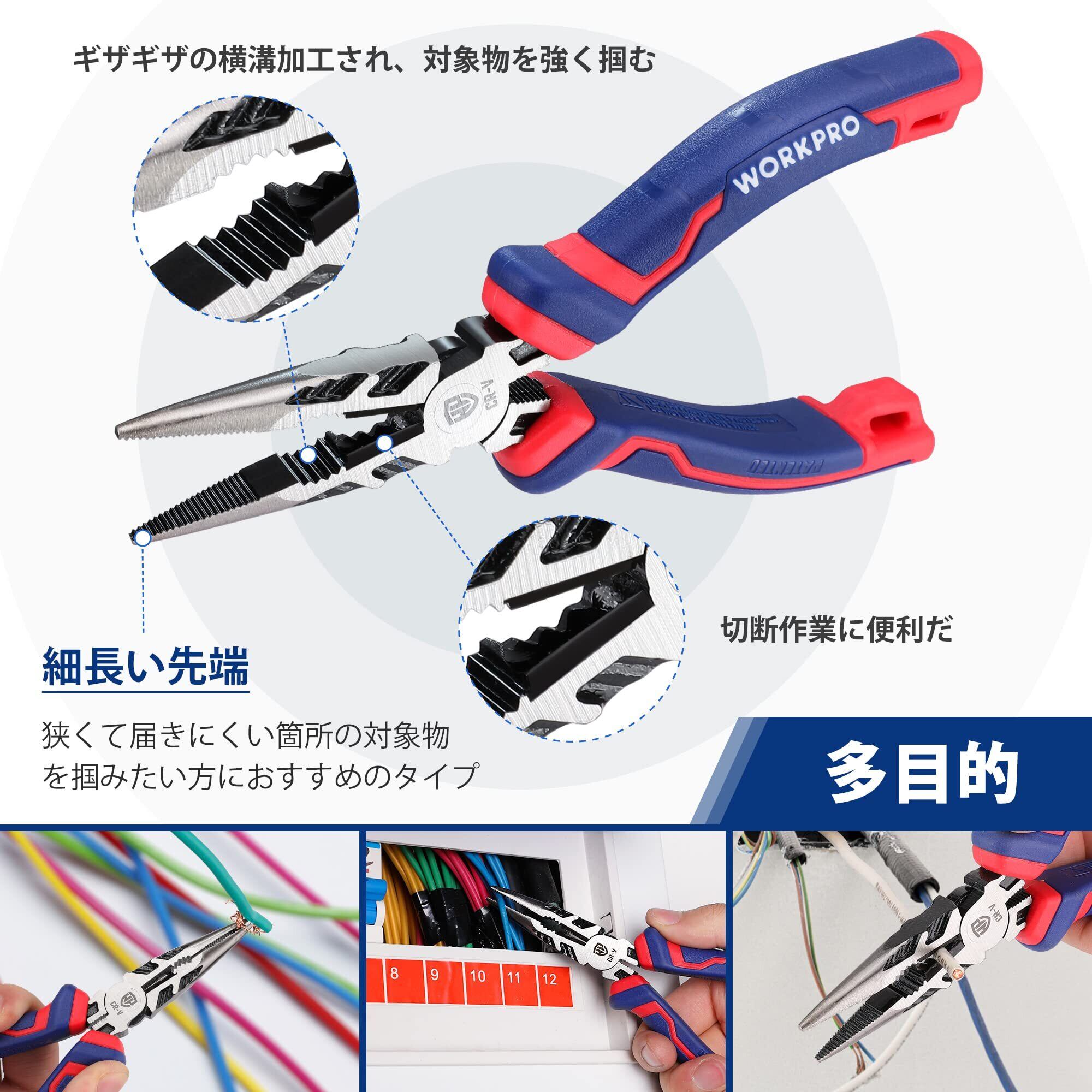WORKPRO ペンチセット プライヤーセット 3本セット 強力ペンチ ラジオペンチ 斜めカットプライヤー 強力ニッパー 家庭工事 自働車修理 鋼線切断