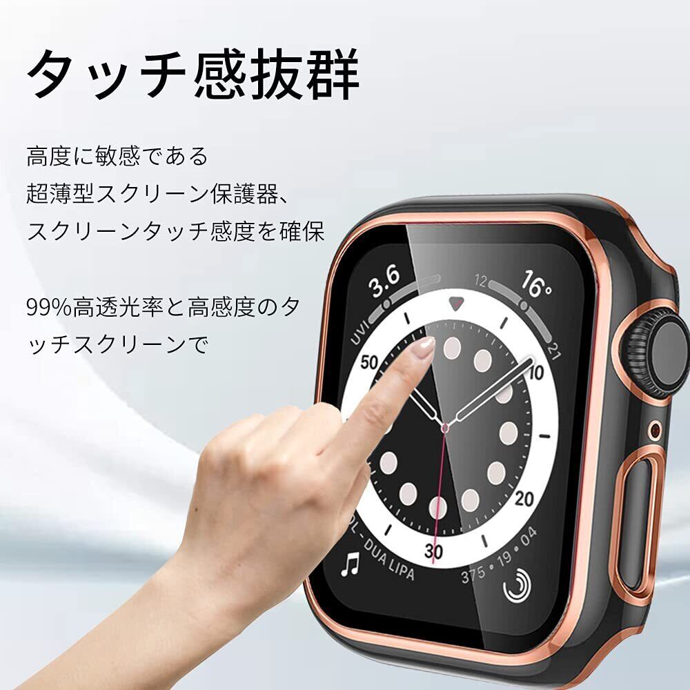 TEMEDO 対応 Apple Watch ケース Series SE2/SE/6/5/4 アップルウォッチ カバー PC素材 メッキ加工 Apple Watch カバー 全面保護 二重構造 アップルウォッチ ケース ガラスフィルム 一体型 高耐久 高透過率 装着簡单(40mm,光沢のブラック+ローズゴールド)