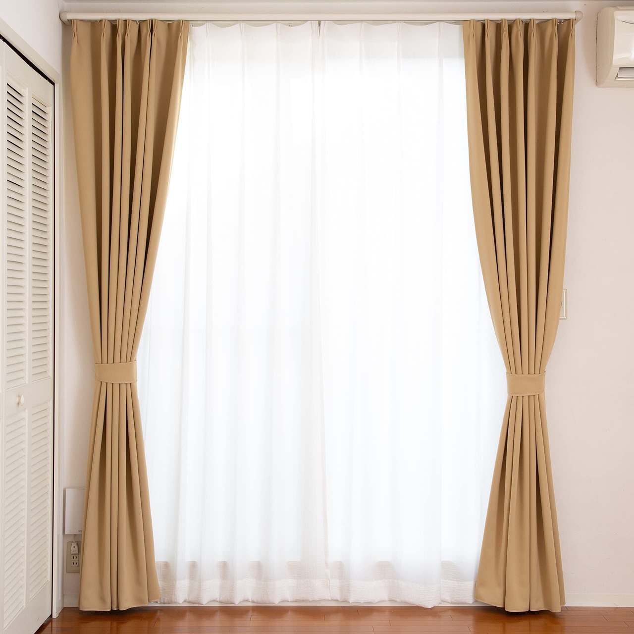 カーテン2枚にアジャスターフックが14個、タッセルが2本付属しているので届いてすぐお使いいただけます。