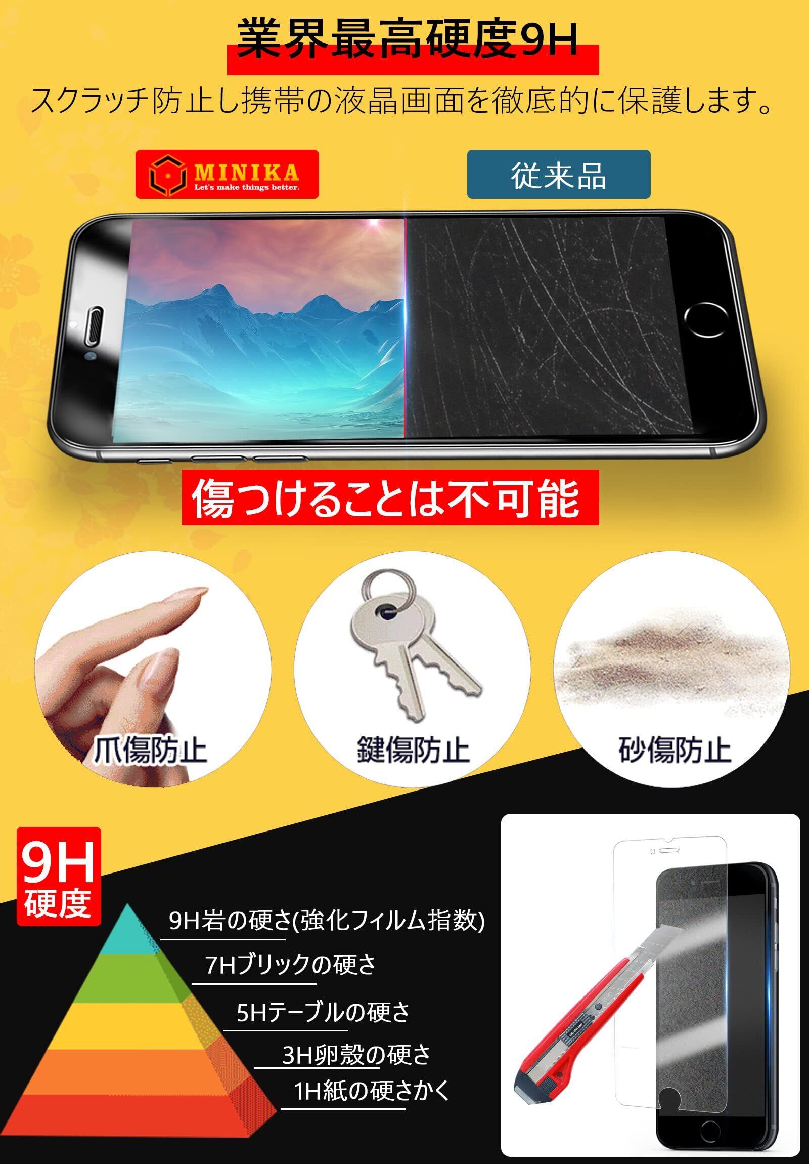 【その他の機能】 MINIKAのiphoneSE3 マットフィルム , アンチグレア、気泡なし、なめらか、撥油性、疎水性、防指紋、滑りやすい、ゲーマーに嬉しいサラサラ感触、緩衝衝撃、表面高硬度で鋭い物からキズから守ります。
