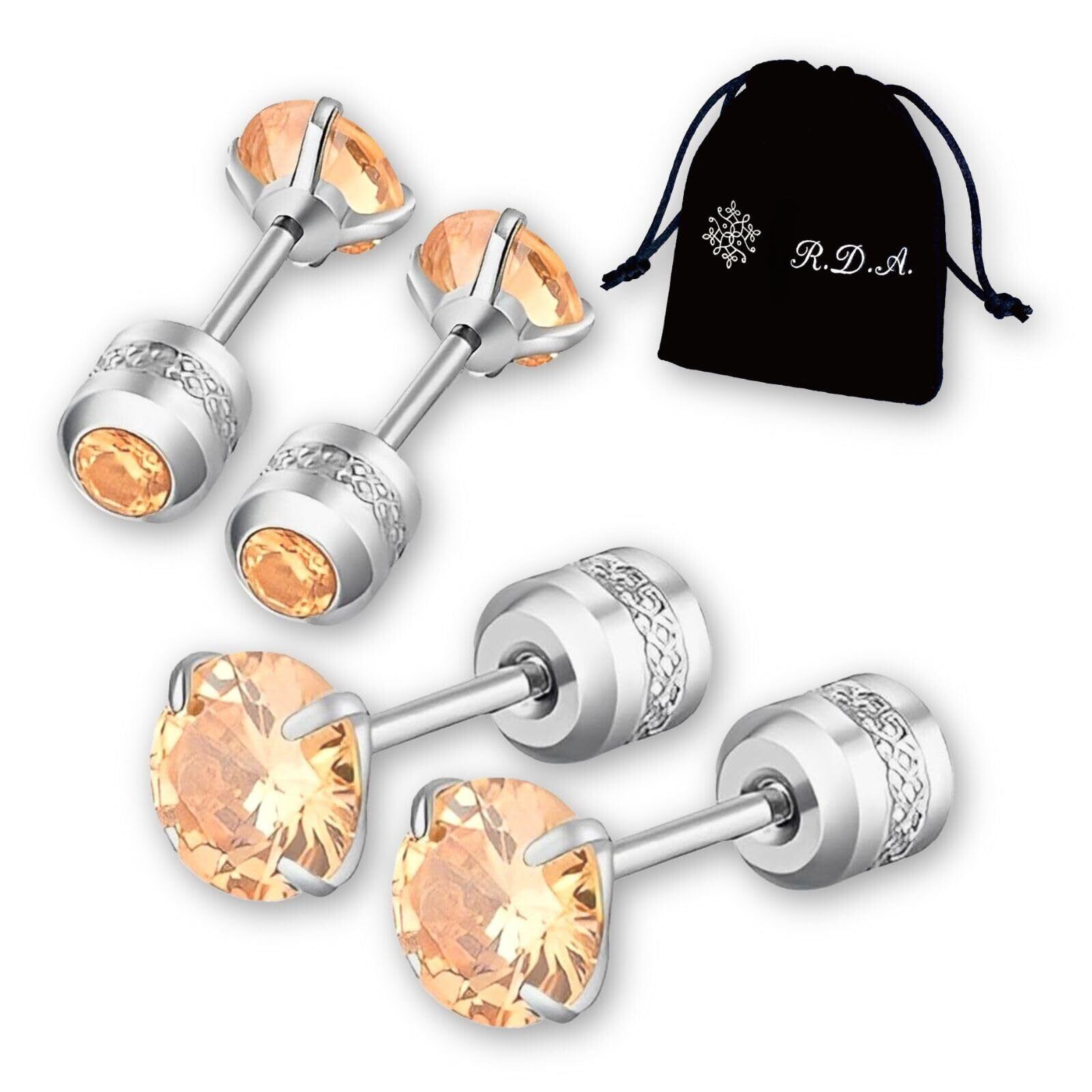 R.D.A. ステンレス ピアス 金属アレルギー対応 つけっぱなし ファーストピアス 3mmと5mmのセット 両耳用