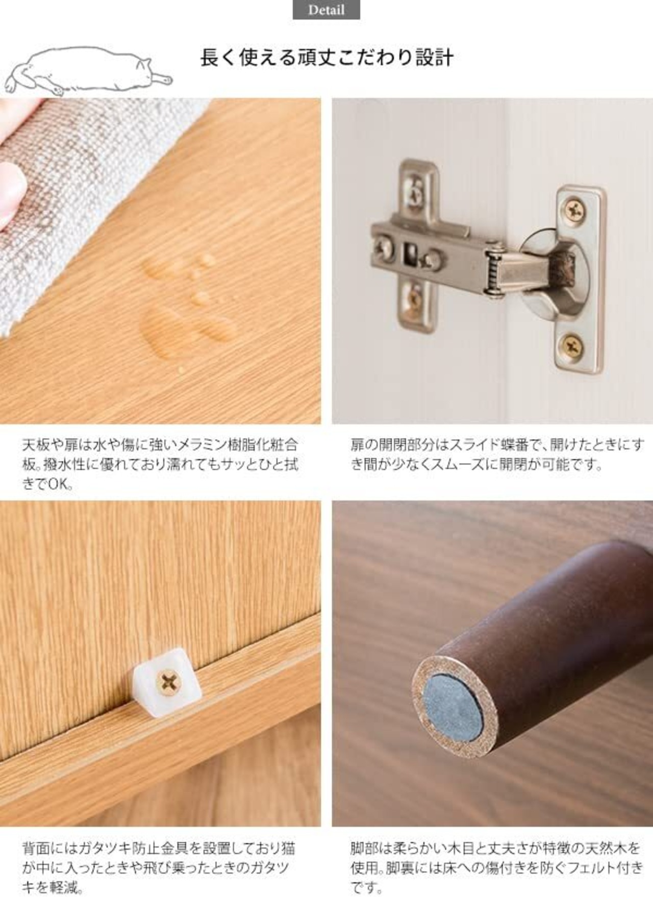 材質合成樹脂化粧合板(メラミン樹脂)、天然木(ラッカー塗装)