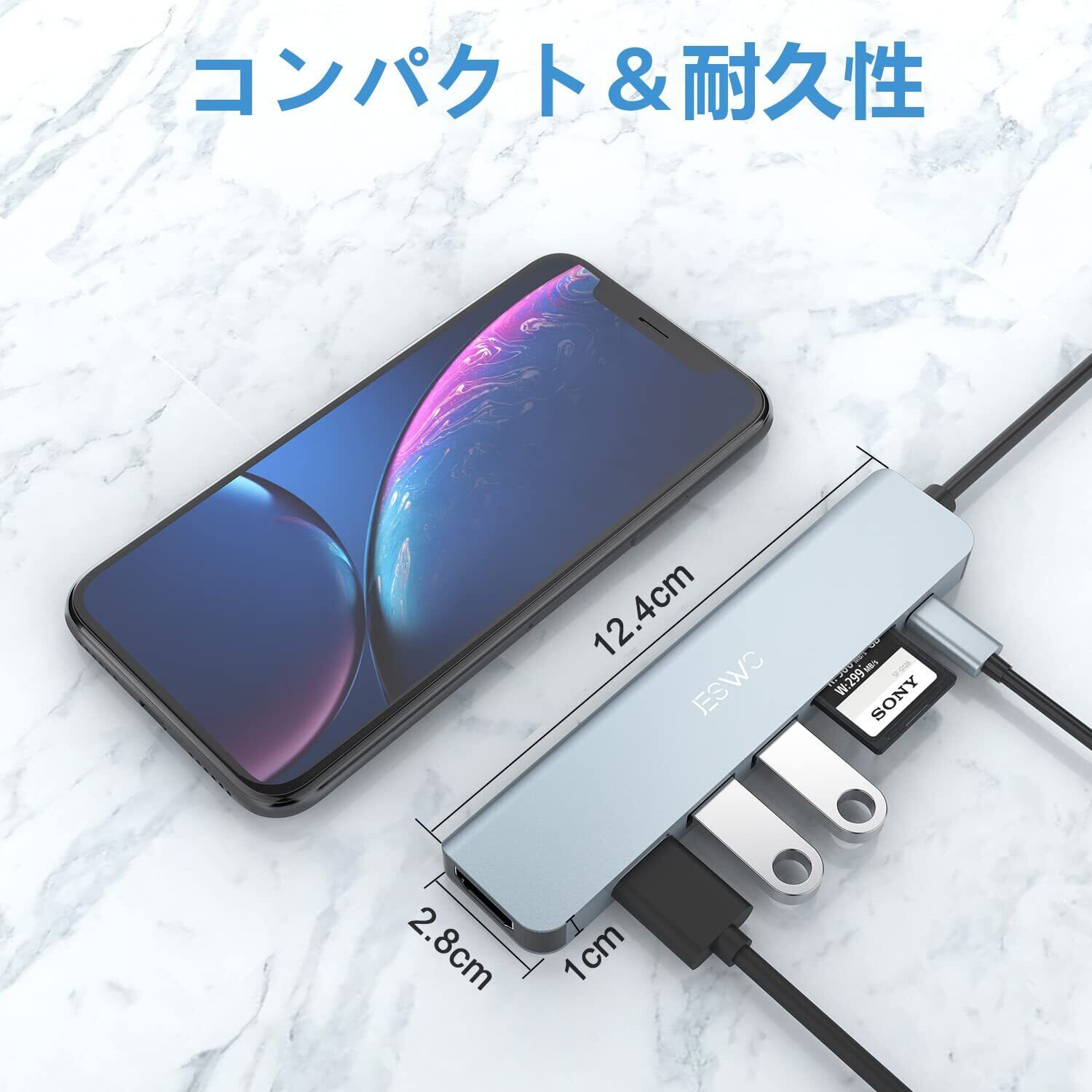 【7-in-1 USB C ハブ JESWO マルチポート】このUSB ハブ Type-Cアダプターは、HDMI(4K@30Hz)ポート*1、USB 3.0ポート*1、SD&TF/microSDカードリーダー *1、100W PD急速充電ポート*1、USB 2.0ポート*2を備え、さまざまなデバイスに対応。使用も簡単、挿すだけですぐ使えます。