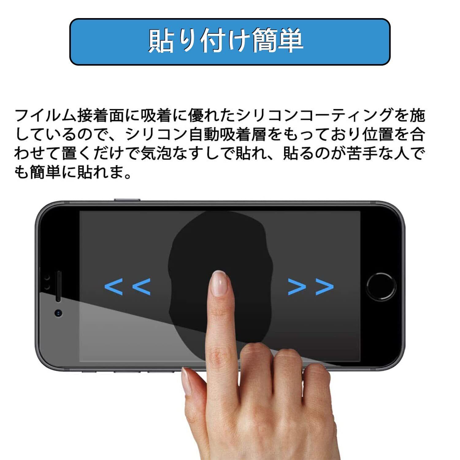 【指紋防止、自動吸着、気泡防止】高耐久性防汚コートにより指紋や汚れが付きにくくなっています。付着しても簡単に拭き取れます。常に美しい画面と滑らかでよい操作感が得られます。iPhone se2フィルム接着面に吸着に優れたシリコンコーティングを施しているので、シリコン自動吸着層をもっており位置を合わせて置くだけで気泡なしで貼れ、フィルム貼りことが苦手の方でも簡単に貼る事が可能です。