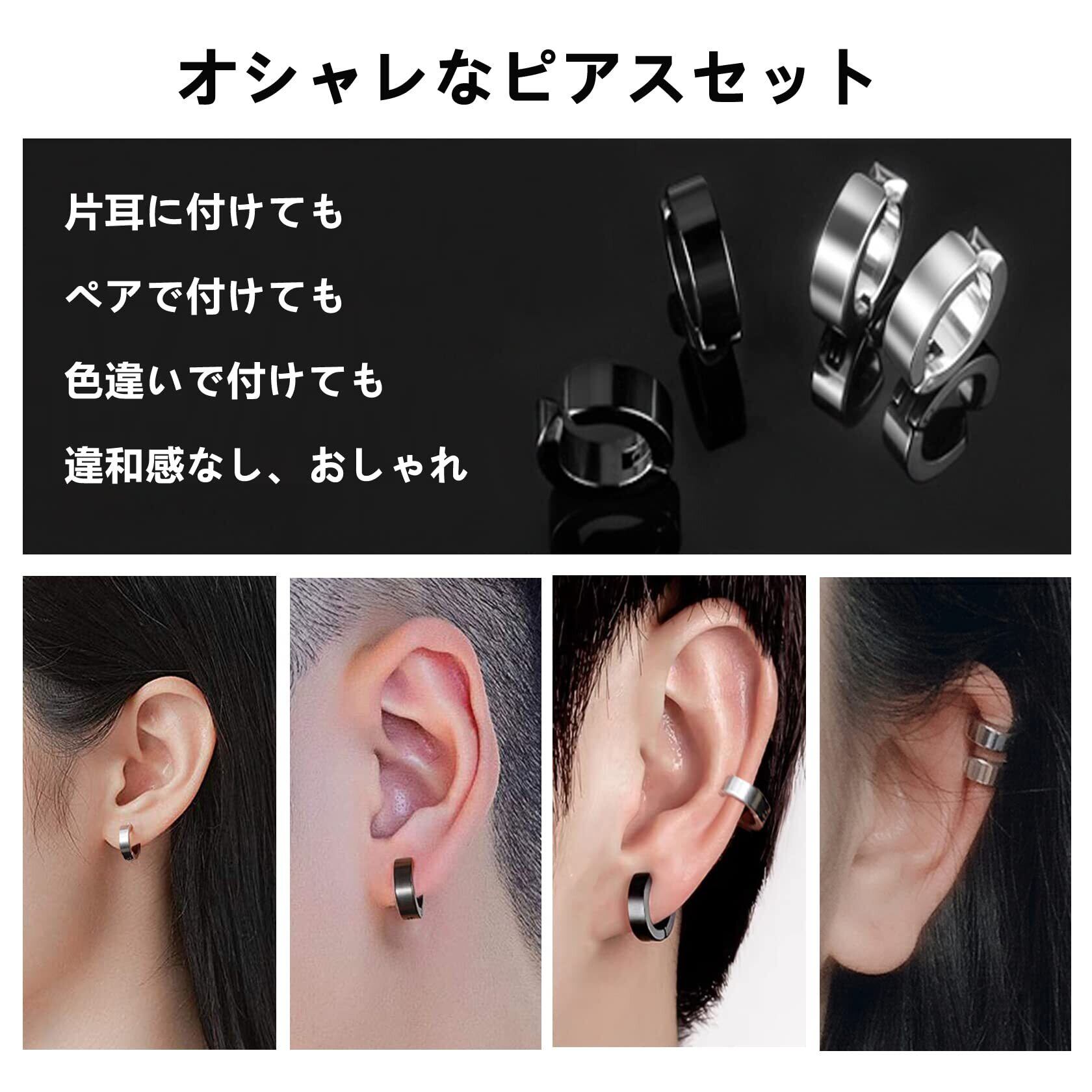 【お得な8ペア&16個のフェイクピアスメンズ】ピアス穴不要でオシャレに楽しめるイヤリング、イヤーカフ、ノンホールピアスメンズセットです。8ペア、合計16個の大容量セットです。イヤリングのパーツは付けたり、外したりできるし、自由に組み合わせることによってお好みのスタイルを楽しめます。フェイクピアスを両耳につけたり、片耳だけで付けたり、重ね付けたり、ブラックととシルバー色違いで付けたりして、フープピアス、イヤーカフ、軟骨ピアスなどとして10個以上の付け方法があります。人気でシンプルなデザインなので、個性的で自分の魅力さを十分に表せるレディースメンズイヤリングセットです。