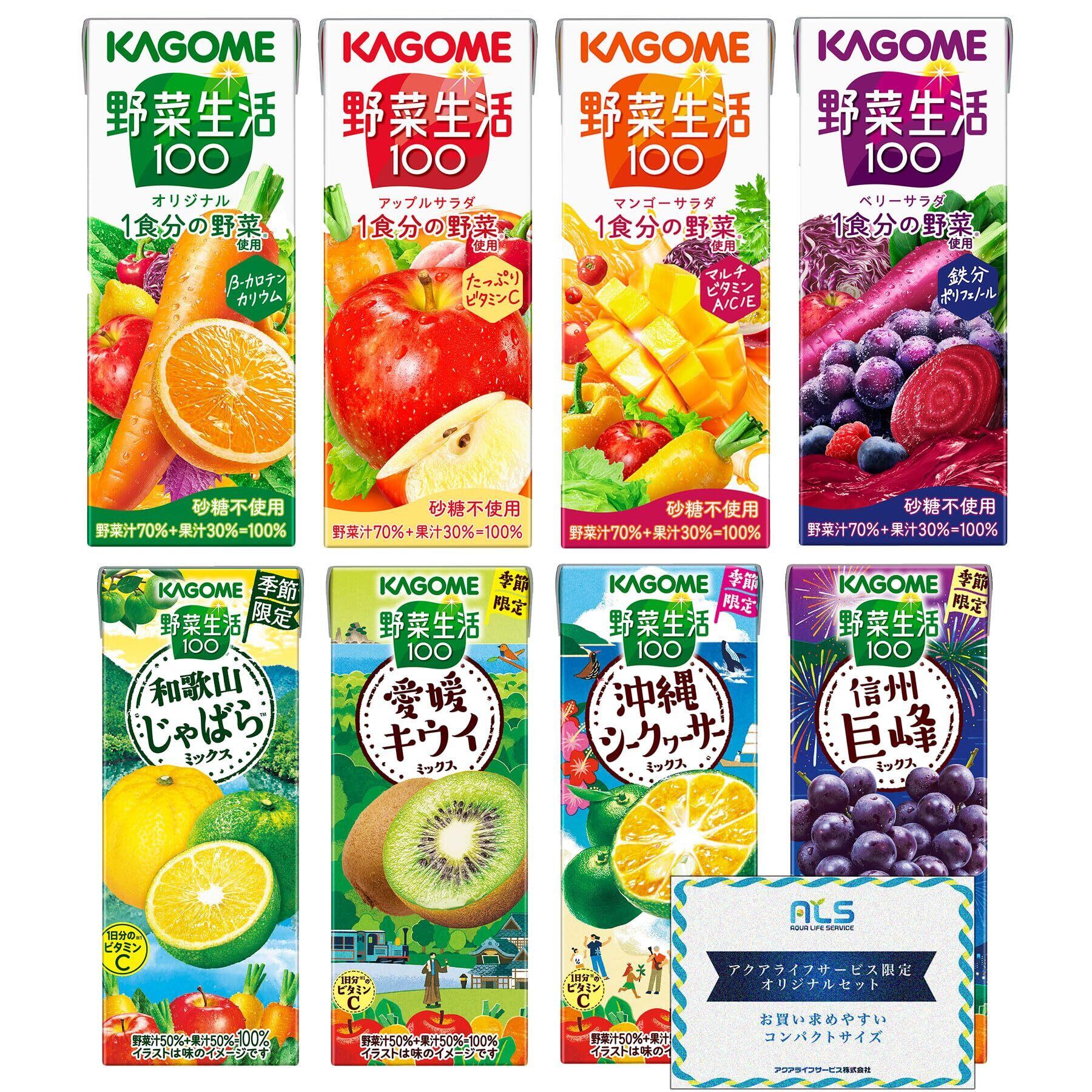 カゴメ 野菜ジュース 野菜生活100 200ml・195ml 野菜飲料 アソートセット24本入(6種類 x各4本)(季節商品2種類)[専用段ボール箱]オリジナルティッシュ付