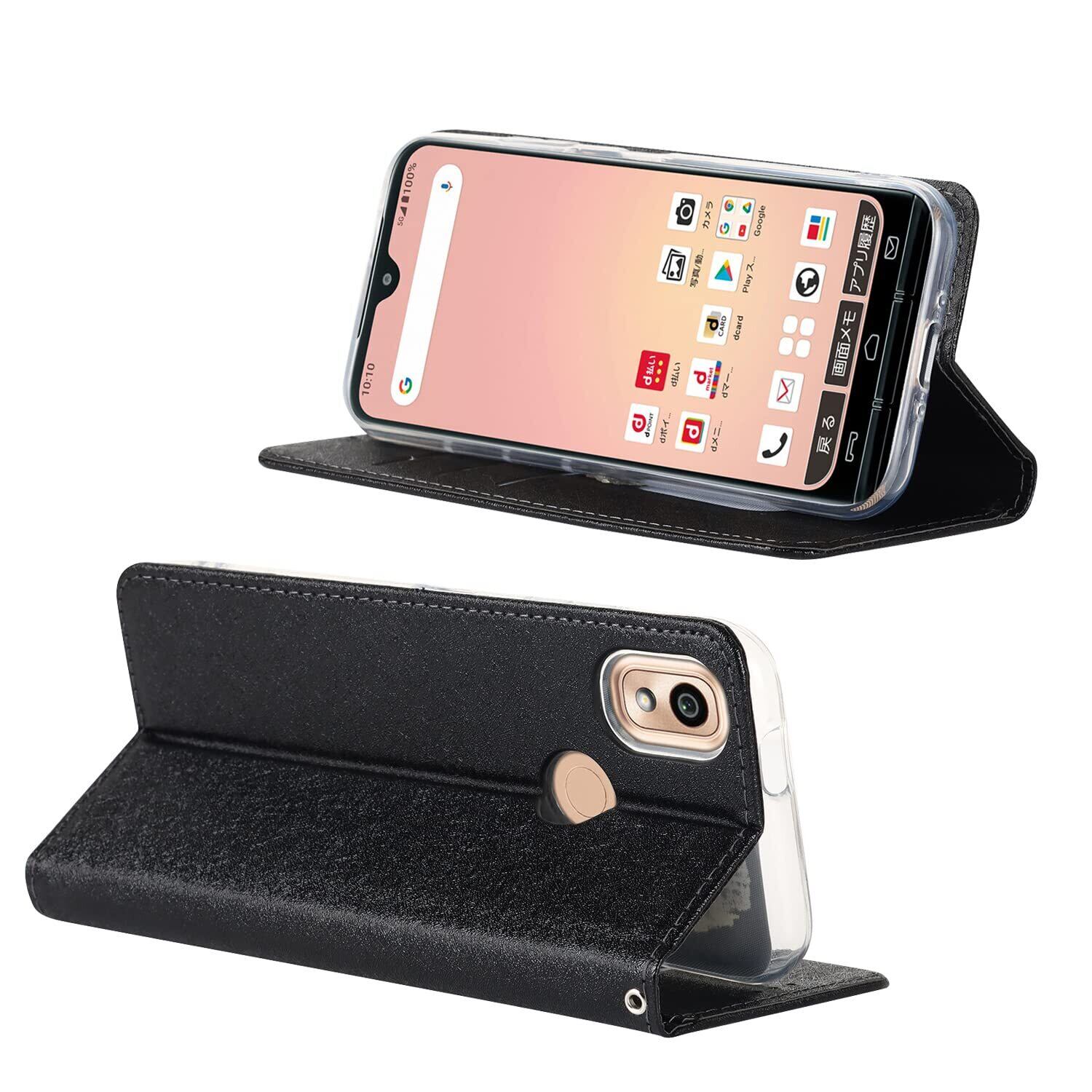 あんしんスマホ KY-51B ケース 手帳 財布型 京セラ ky-51b ケースカバー KY51B docomo 手帳型ストラップ付き PU皮革 明るい色 内蔵マグネット 携帯カバーカードポケット ブラック