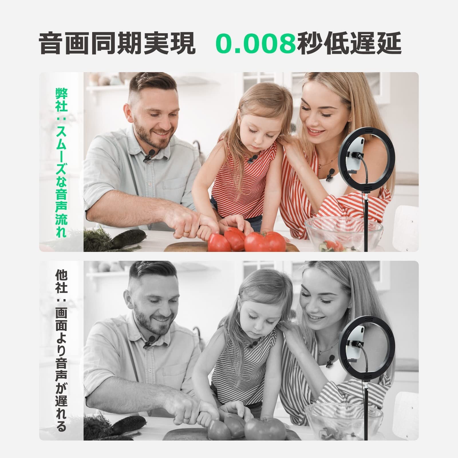【音画同期&360°全指向性+正確な音拾い】ワイヤレスピンマイクはリアルタイム自動同期技術を搭載し、送信機と受信機の間の信号強度を高め、接続速度を向上させます。ライブ配信が遅延なく、快適にできるようになります!全方位で集音できる全指向特性えを採用され、高感度に収音可能、気軽に収録できます!