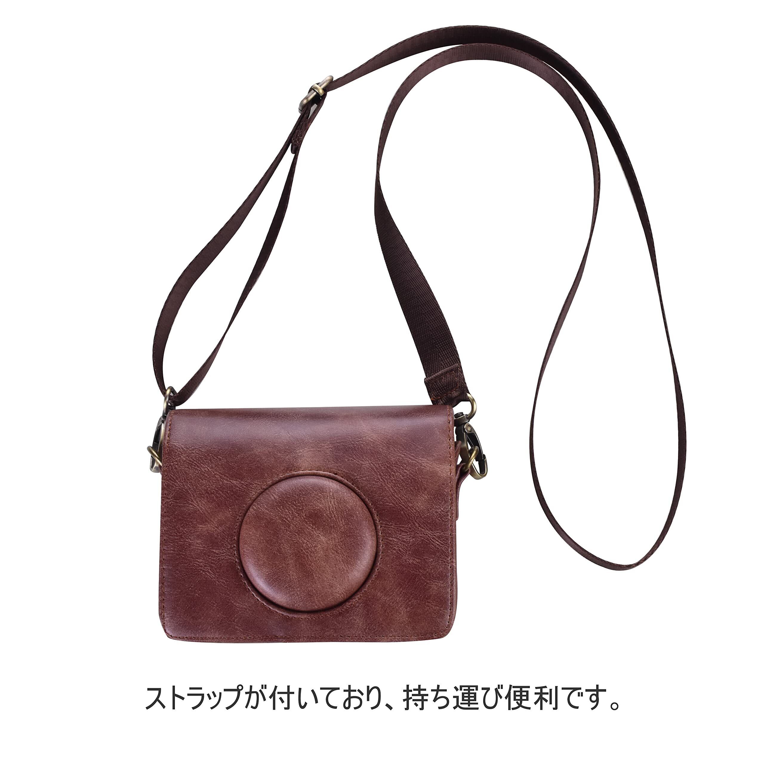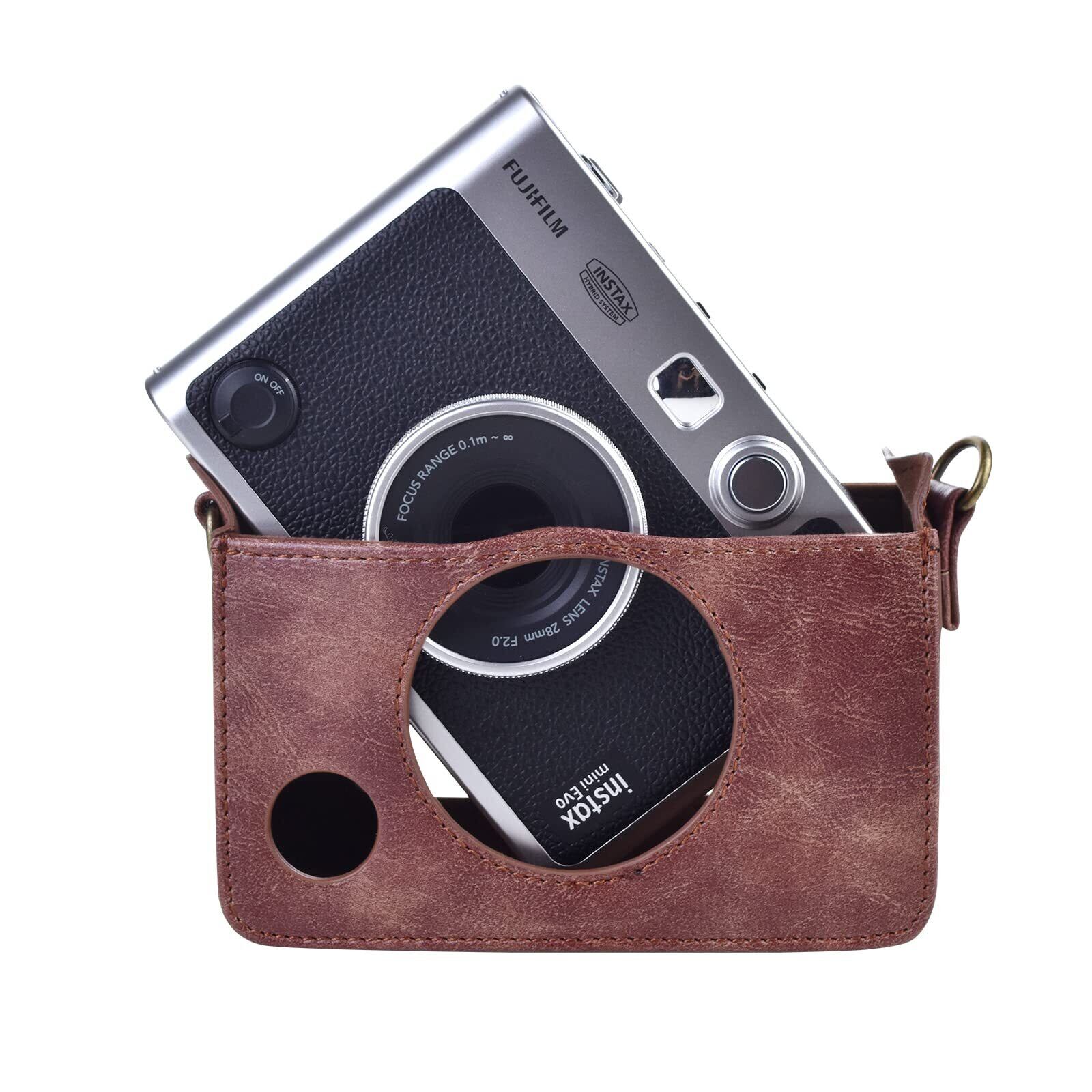 kinokoo チェキフィルム チェキ ケース、instax mini evo ケース チェキ フィルム チェキケース instax mini EVOカメラケース instax mini Evoケース ショルダーストラップ付きボタン操作でき PUレザー(コーヒー)