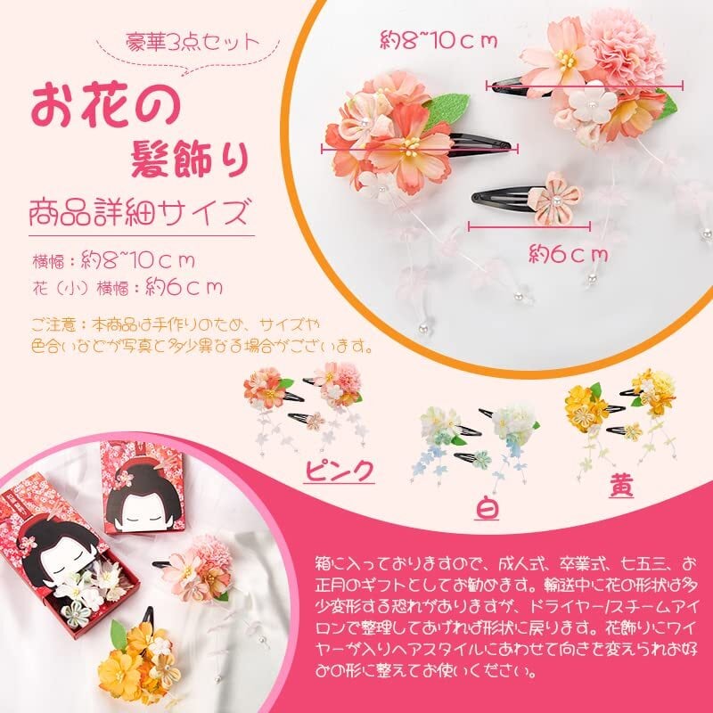 [OTAKUMARKET] 髪飾り 浴衣 七五三 成人式 髪 飾り 女の子 花 袴 着物 振袖 和装 卒業式 結婚式 髪留め 子供 和風 高級造花 ヘアアクセサリー 3タイプ 3カラー