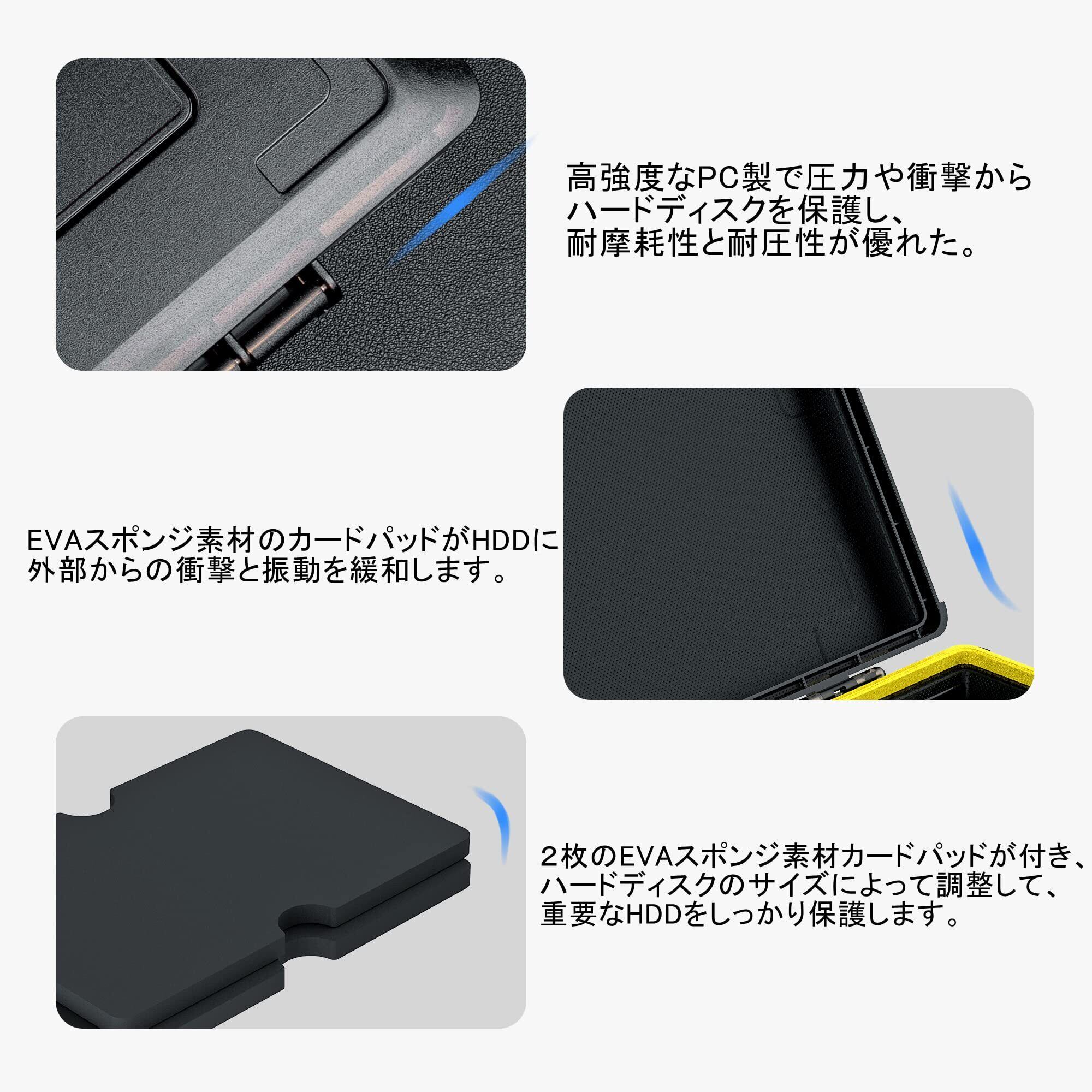 HDD保護:2枚のEVAスポンジ素材のカードパッドが付き、外部からの衝撃と振動を緩和します。EVAスポンジ素材のカードパッドはハードディスクのサイズによって調整して 、重要なHDDをしっかり保護します。