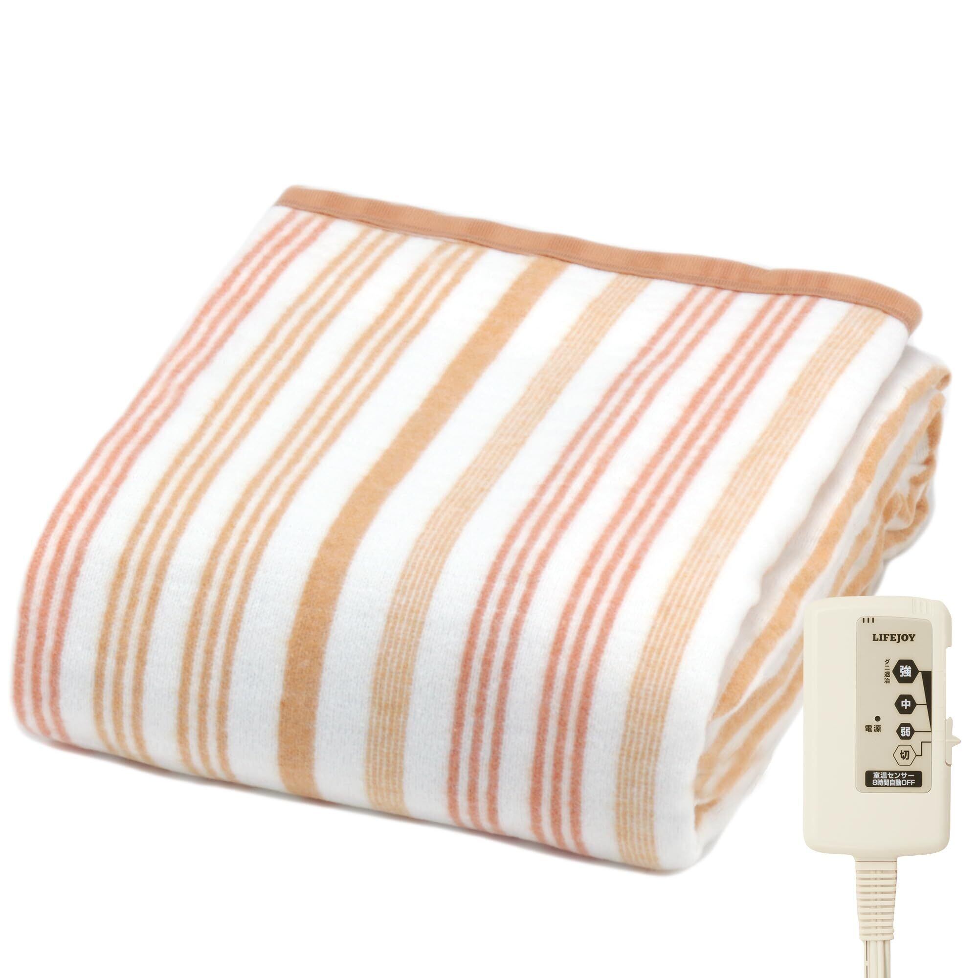 ライフジョイ 電気毛布 掛け 敷き 兼用 シングル オレンジ 188cm×130cm 洗濯可能 8時間OFFタイマー機能付 室温センサー付 頭寒足暖 やわらか JBK551G-D