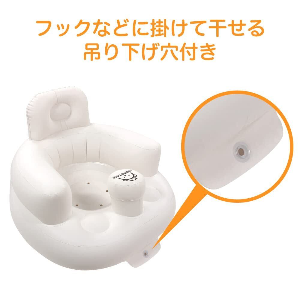 空気でふくらむタイプのベビーバスチェア 大型バルブで短時間で空気が入り、抜くときも一気に抜ける! 空気を抜くとコンパクトになるので持ち運びや収納に便利