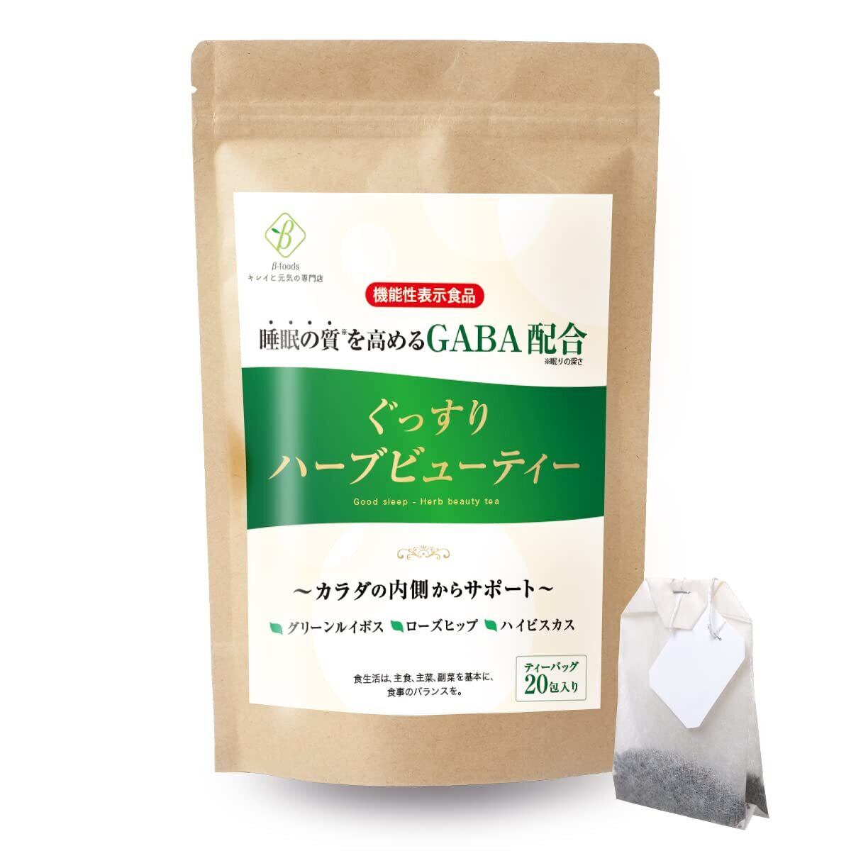 ベータ食品 ぐっすりハーブビューティー GABA 20包 ティーバッグ 機能性表示食品 ローズヒップ ハイビスカス ルイボス