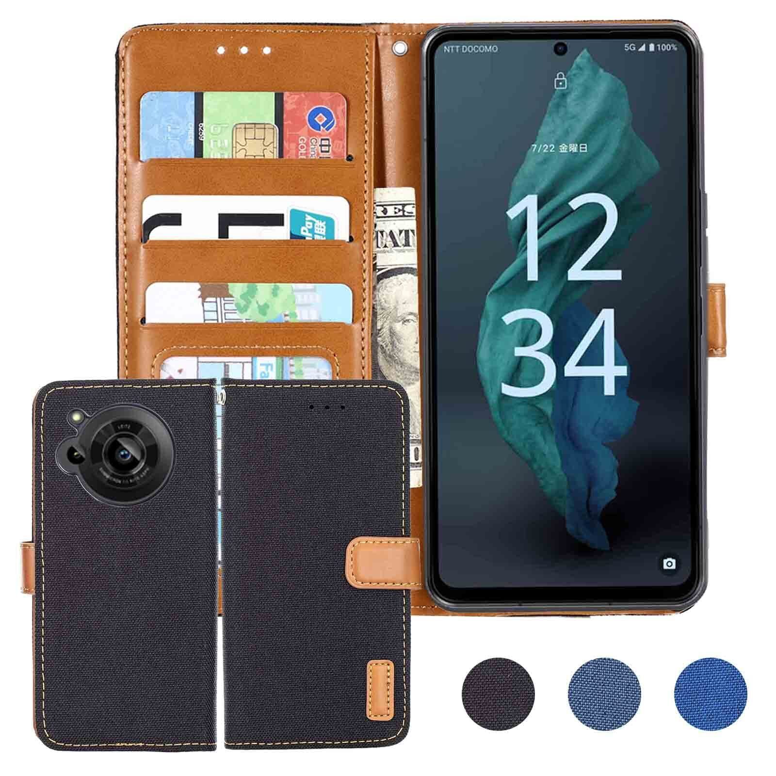 【 Anrek 】AQUOS R7 / docomo SH-52C 対応 SHARP デニム材料 手帳ケース (ブラック) シャープr7 ドコモsh52c アクオスr7 ケース カバー 手帳型 カード収納 サイドマグネット スタンド機能付き スマホケース 財布型 耐衝撃 耐摩擦 保護ケースr7 BLACK