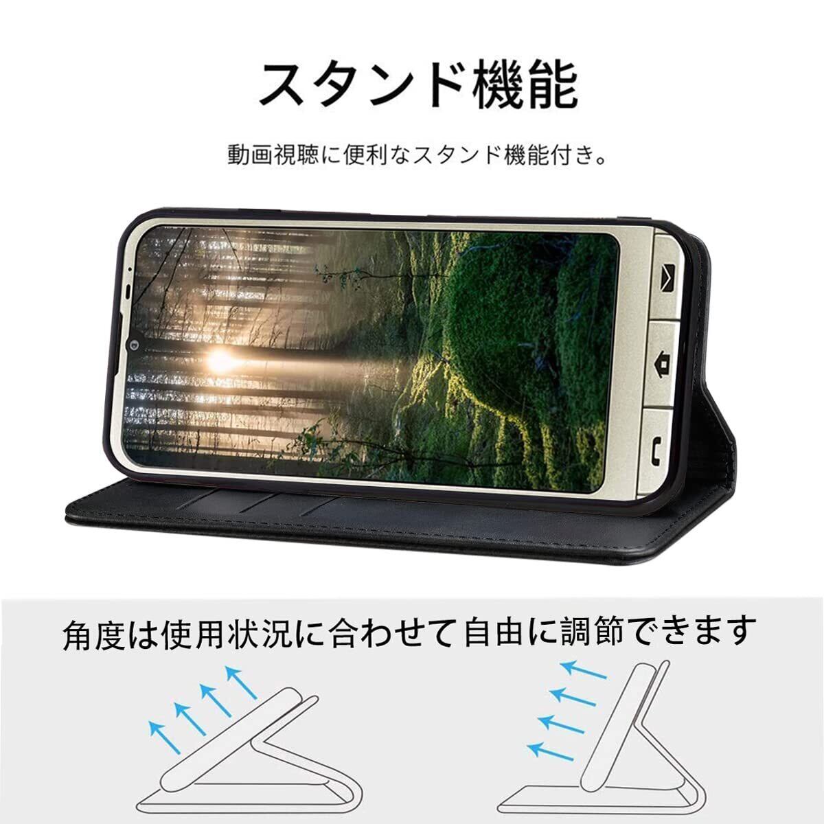 シンプルスマホ6 ケース 手帳型 Simple Sumaho 6 ケース 手帳型 A201SH ケース 高質PUレザー 耐衝撃 内蔵マグネット開閉式 ベルトなし スマホケース おしゃれ カードポケット スタンド機能 便利 スプラット同梱 携帯ケース (ブラック)