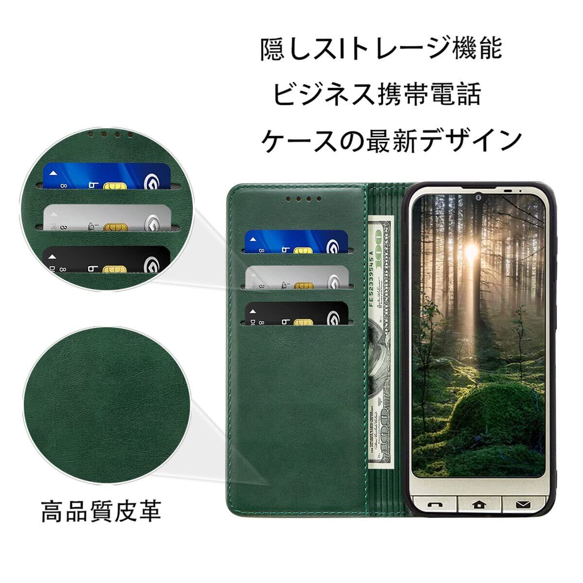シンプルスマホ6 ケース 手帳型 Simple Sumaho 6 ケース 手帳型 A201SH ケース 高質PUレザー 耐衝撃 内蔵マグネット開閉式 ベルトなし スマホケース おしゃれ カードポケット スタンド機能 便利 スプラット同梱 携帯ケース (グリーン)