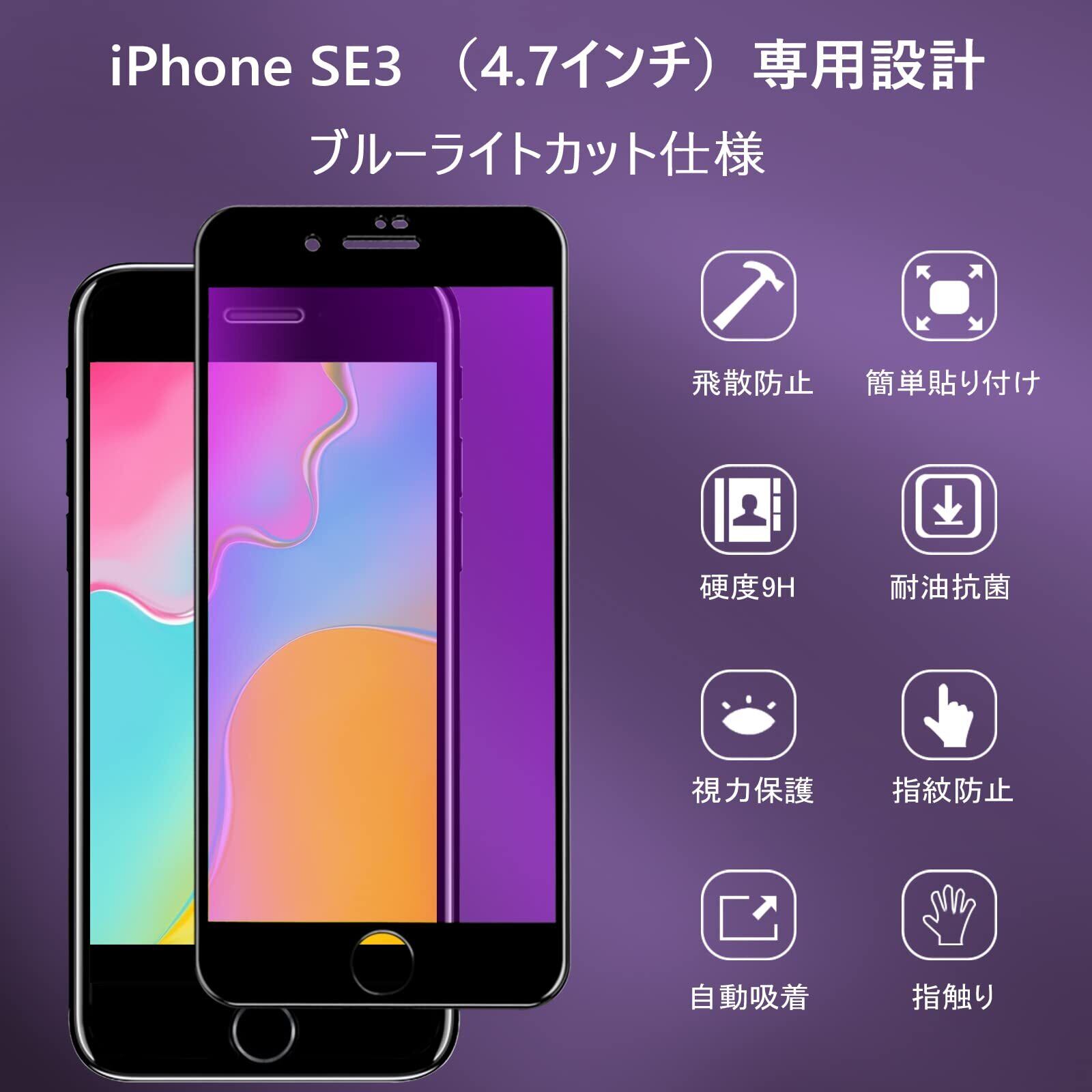 iPhone SE3 ガラスフィルム ブルーライトカット 【2枚セット/全面】 iPhoneSE第3世代 ガラスフィルム ブルーライト アイフォンSE3 保護フィルム iPhoneせ3/えすいー3 用 画面 保護 シート 強化ガラス 【貼り付け簡単/ガイド枠付き】