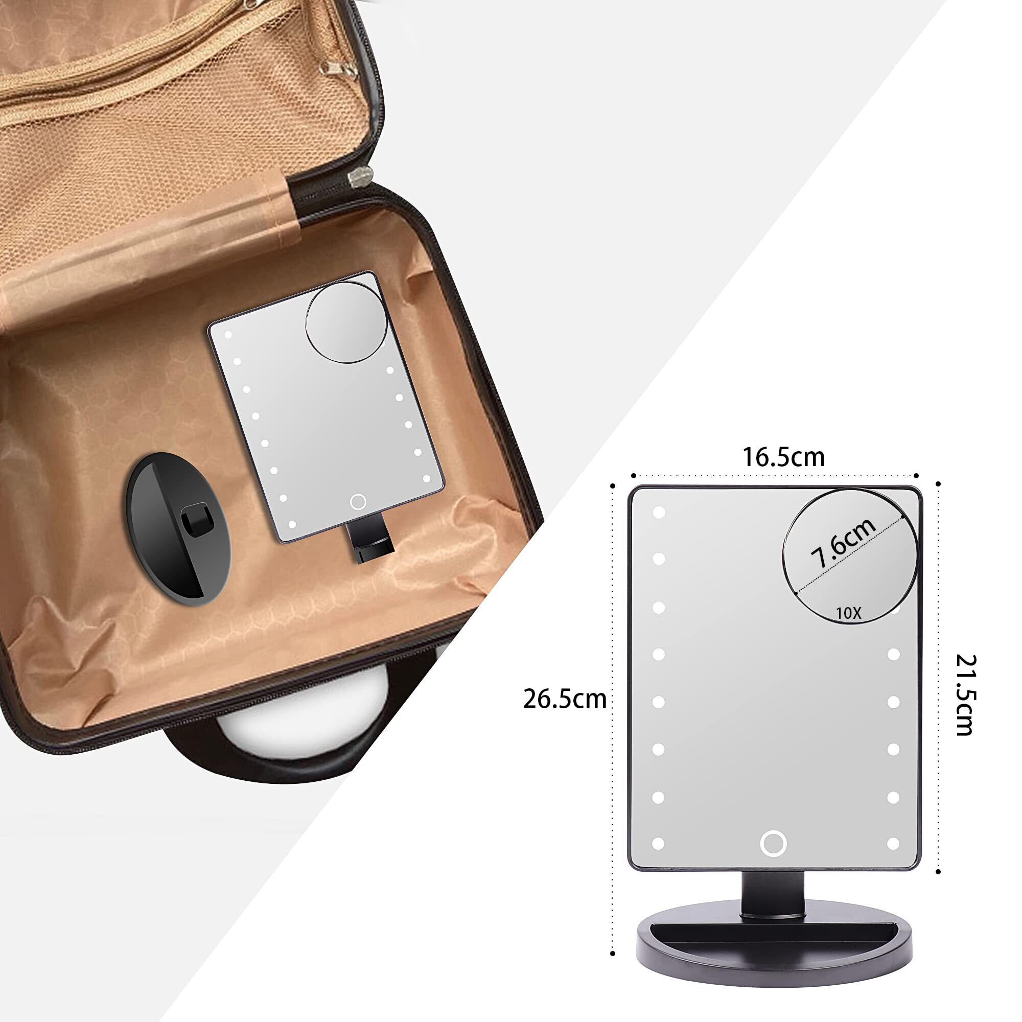 2in1 化粧鏡 16個LED 卓上ミラー 明るさ調節 取り外し可能 10倍拡大鏡 電池式 女優ミラー メイク鏡 滑り止めベース付き 170°回転 小物収納台座 オシャレ 光る プレゼント ギフト