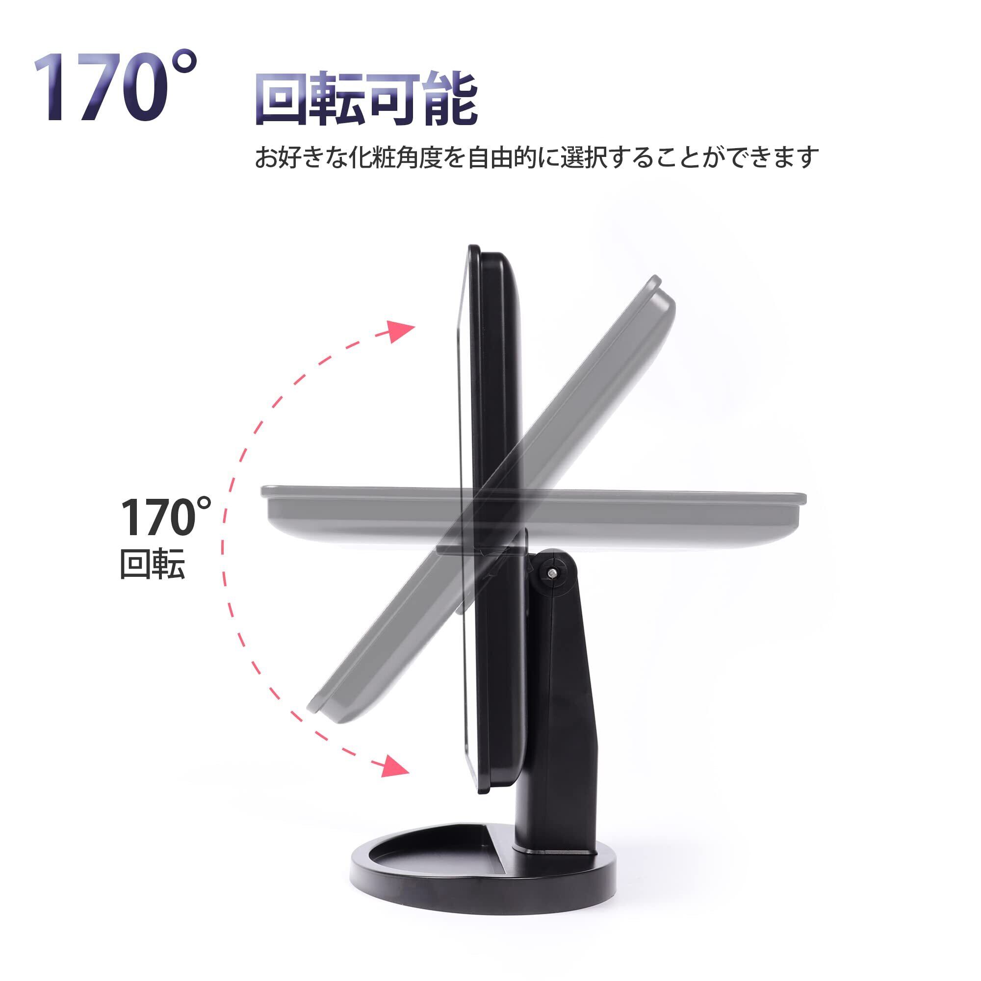 【170°回転でき】等倍鏡と10倍拡大鏡、両面があり、170°回転される、使いやすいように最適な角度に調整することができますミラー。また、収納台座が付きなので、ヘアピン、口紅、イヤリングなど小物の収納にも適しています。