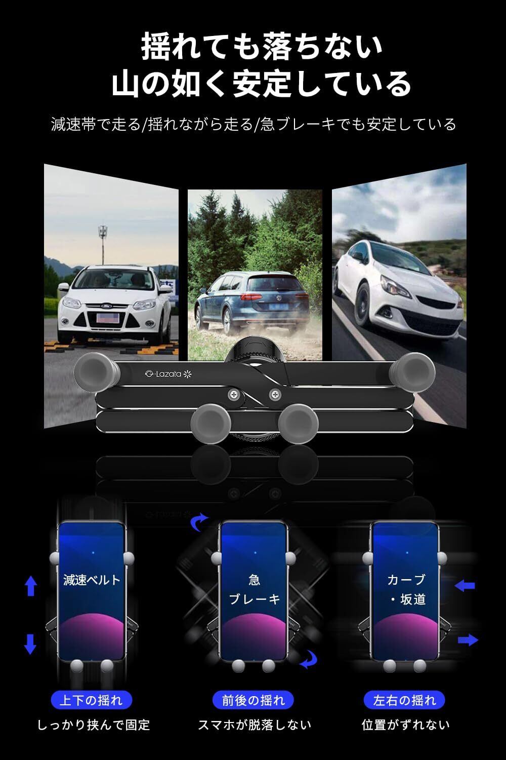 ➤【安定性抜群】重力連動原理に基づき、スマホの重力を感応してアームが自動開閉してしっかりとスマホを挟んで固定します。7点固定構造で、任意の3点で多くの三角形になり、安定性がバッチリなスマートフォン用車載ホルダーです。落下防止できでこぼこの路面により振動されでも落ちません 。角構造、安定感たっぷり。スマホホルダーは重力連動原理を採用、スマホの重力を利用して、スマホをスタンドに置くと自動に挟めます、自動ロック/オーペンできます。