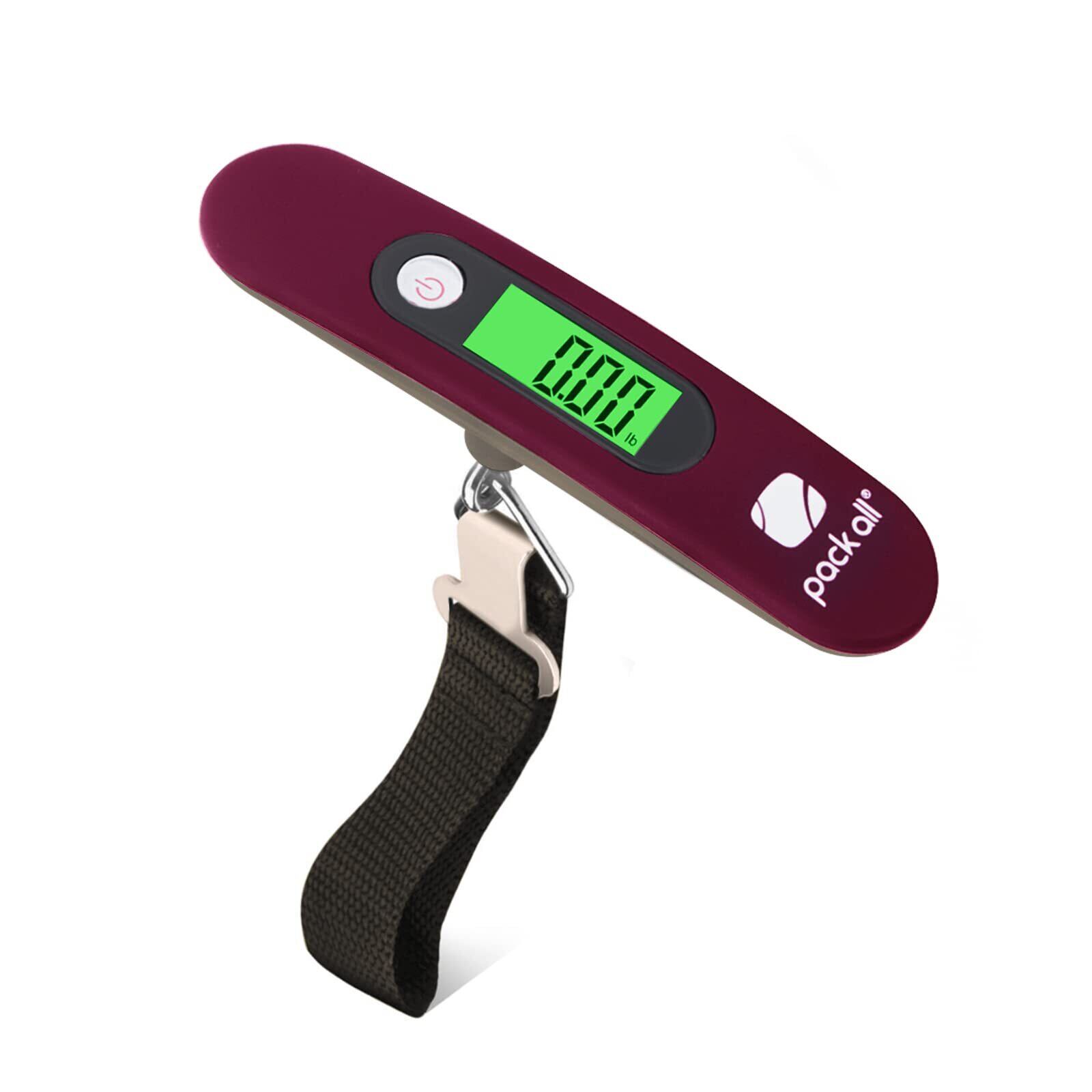 pack all 荷物 旅行はかり 携帯式デジタル スケール 電子はかり LCDスクリーン バックライト付き 最大50kgまで量れる バッテリー付き レッド