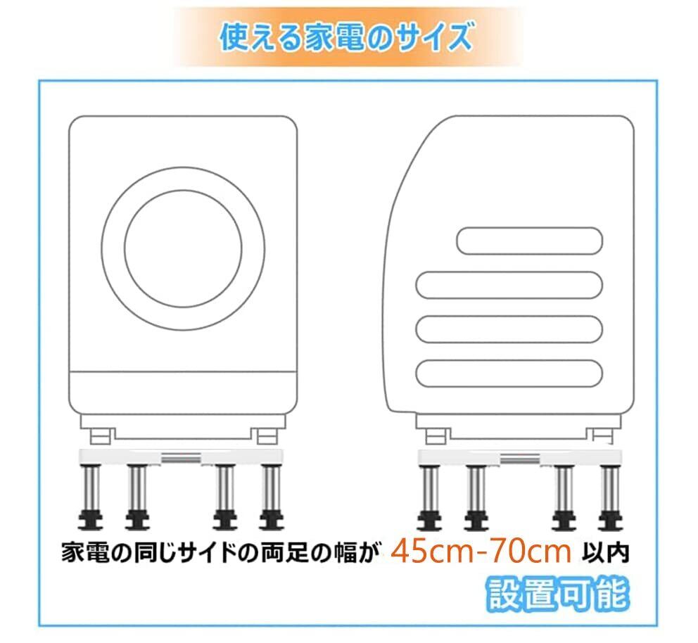 ✤【伸縮式・多サイズ対応】幅/奥行き:43~66cm伸縮可能 高さ:18cm-20cm 縦型・ドラム式洗濯機、冷蔵庫などに対応しています。耐荷重:約500kg