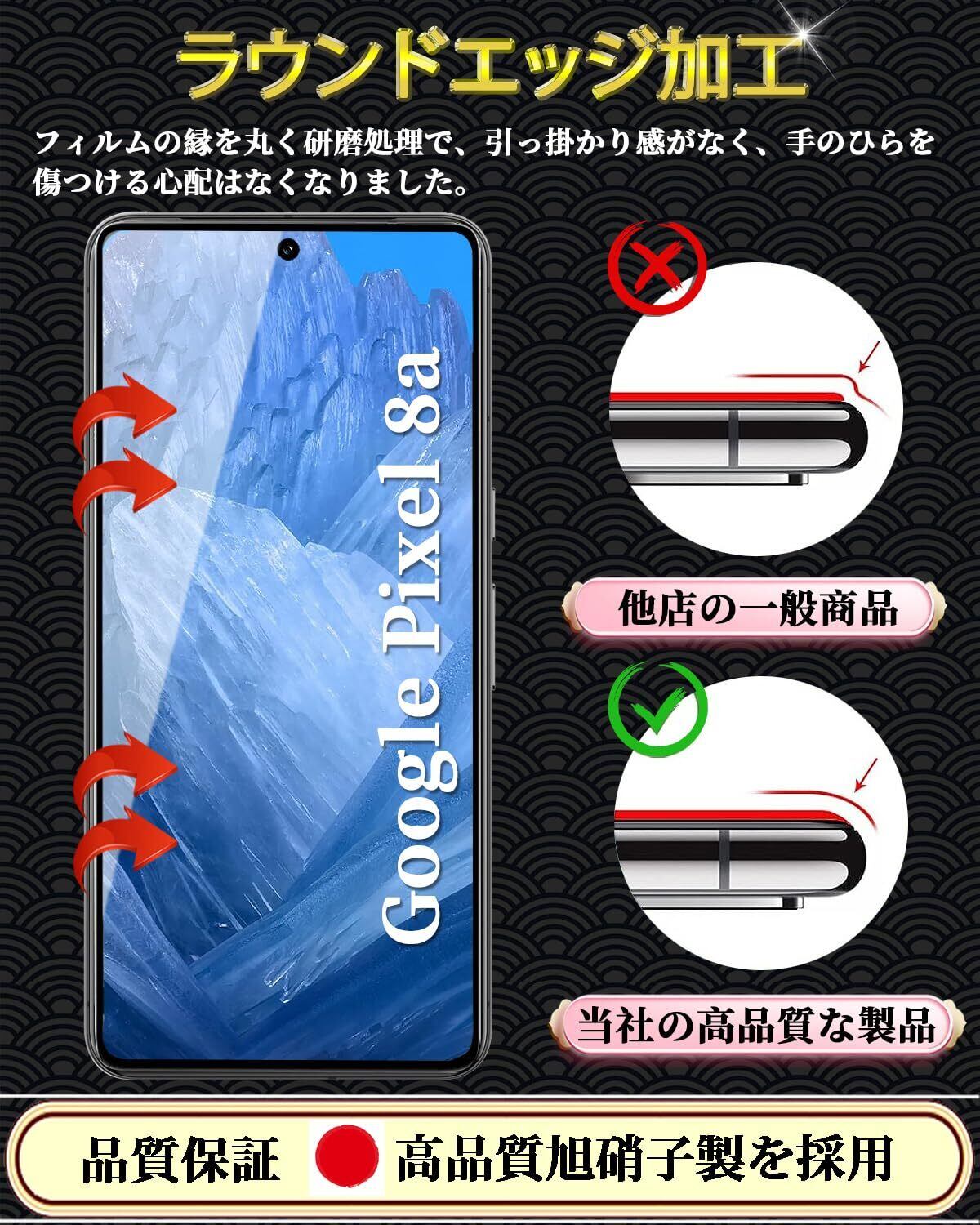 対応 Google Pixel 8a ガラスフィルム 全面保護 グーグルピクセル8a 強化ガラス 保護フィルム 硬度9H 自動吸着 気泡防止 高透過率 貼り付け簡単 指紋防止 キズ防止 撥水撥油【2枚入り】