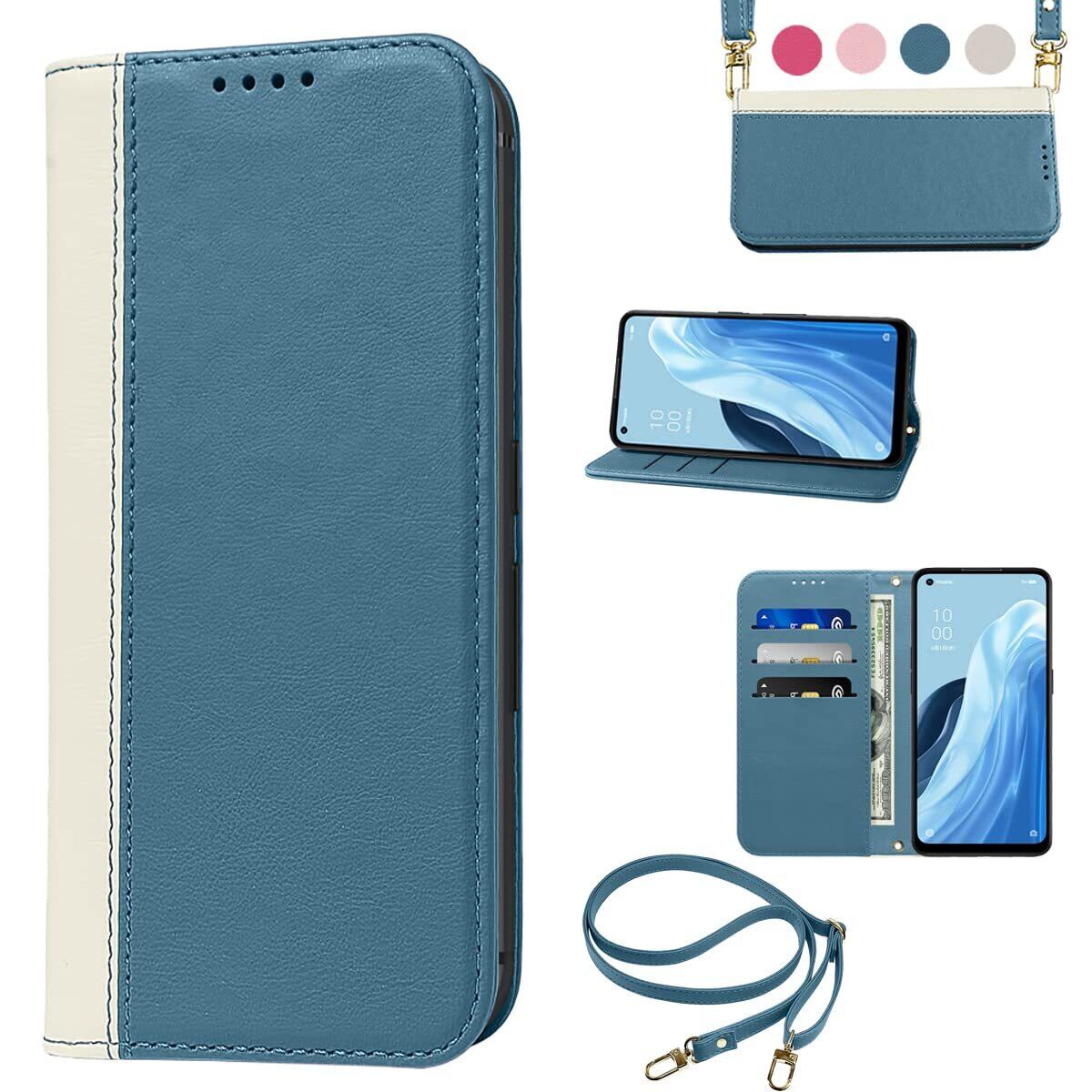 OPPO Reno 9A ケース 手帳型 高質PUレザー OPPO Reno 7A カバー OPG04 ケース A201OP A301OP ケース オッポ Reno7 A Reno9 A 携帯カバー 肌感のよ 二色組合せ 耐衝撃 肩掛け 首かけ 斜めがけ ショルダー ケース 皮革 耐汚れ 内蔵マグネット開閉式 スマホケース おしゃれ カードポケット スタンド機能 人気 財布型(スカイブルー+ホワイト)