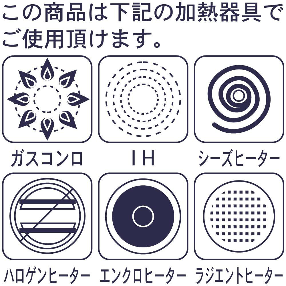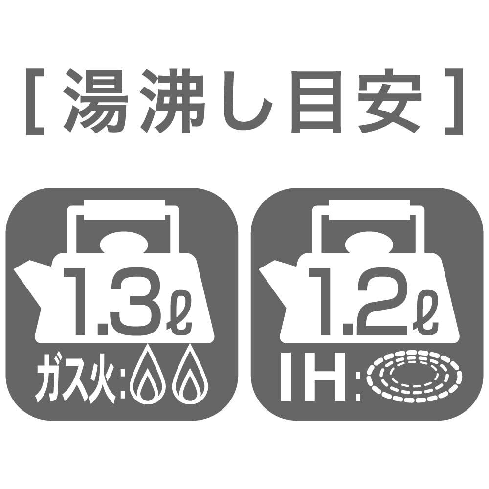 満水容量:1.8L、適正容量/ガス火:1.3L、IH:1.2L、対応熱源:ガス火・IH