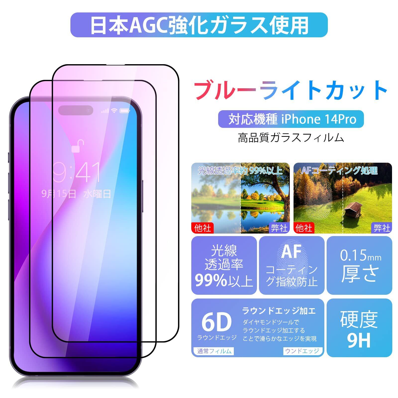 【ブルーライト】iPhone 14 Pro ガラスフィルム iPhone 14Pro 保護 フィルム【2枚セット】アイフォン14プロ 強化 ガラス 液晶 保護フィルム ブルーライトカット【全面保護/目に優しい/旭硝子/高透過率/気泡ゼロ/指紋防止/貼り付け簡単】