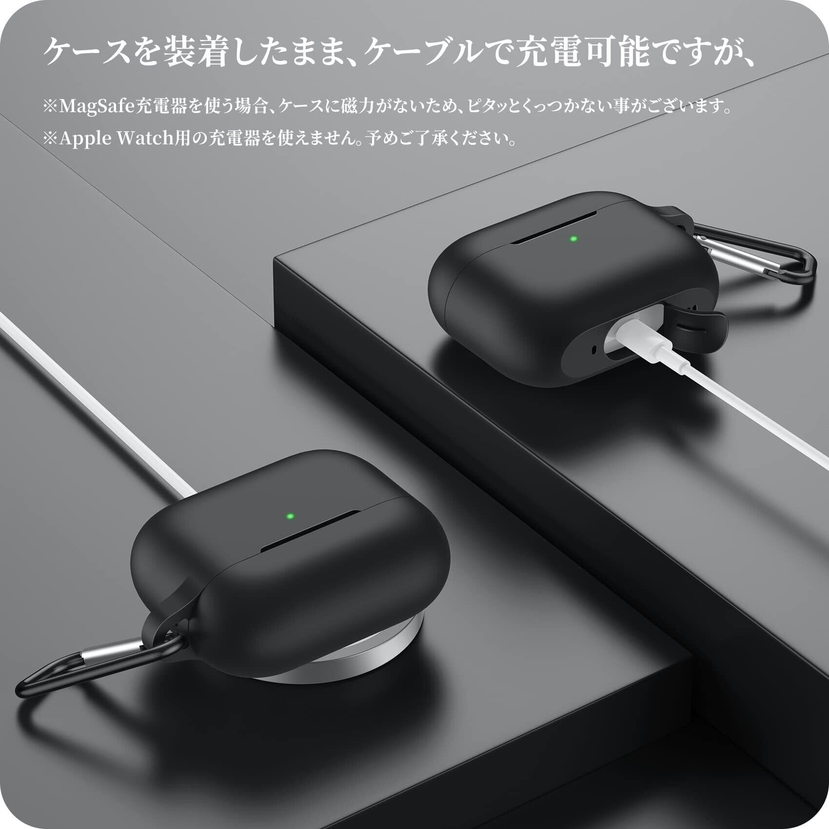 NIMASO ケース AirPods Pro 2 第2世代 専用 カバー エアーポッズ プロ 2世代 シリコン 保護 ケース カラビナ付き ワイヤレス充電対応 (ブラック) NEC22H562