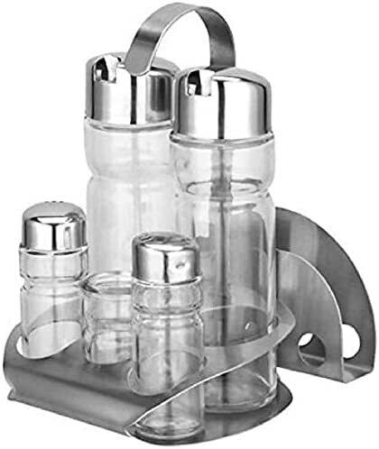 【morningplace】 調味料入れ しょうゆ差し 塩 コショウ 液体調味料差し パウダー 調味料入れ 各2本 セット ステンレス 素材 5個セット (.1個.)