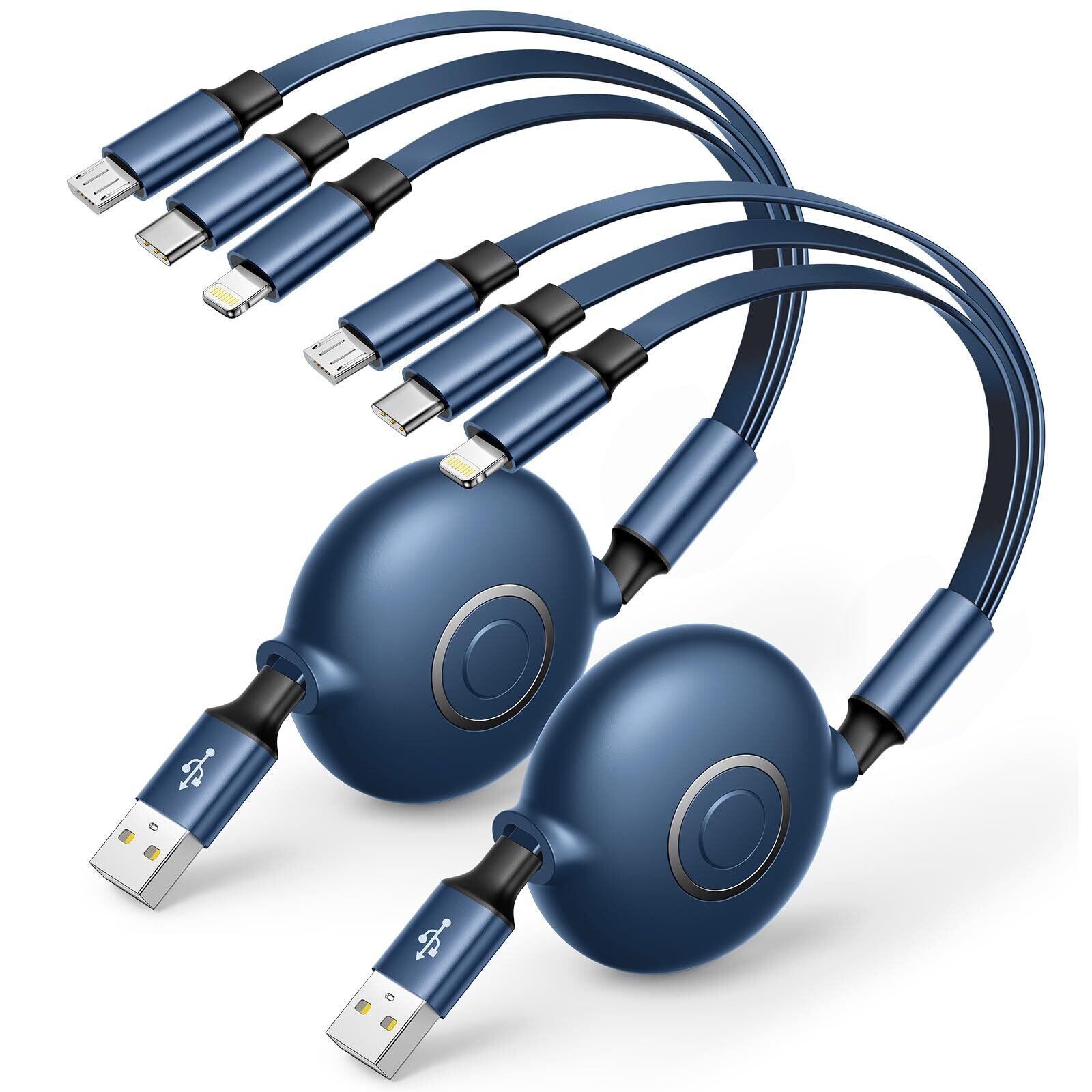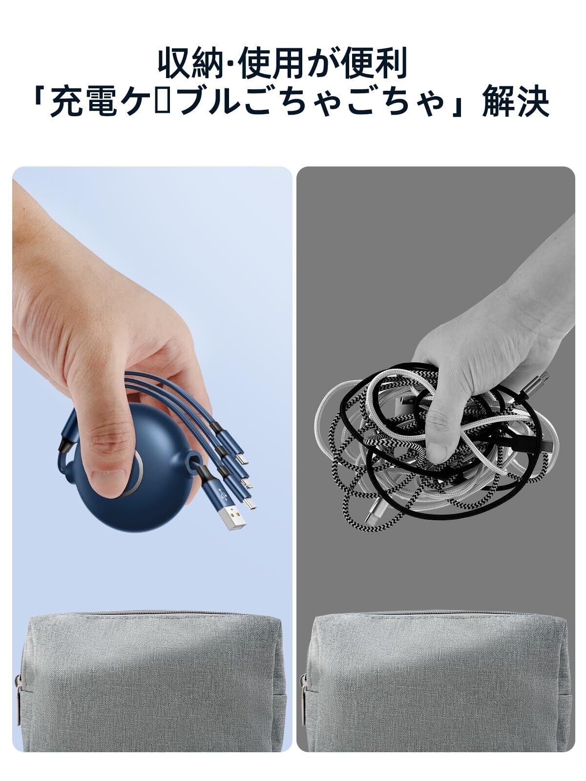 3in1 充電ケーブル 巻き取り式 Aioneus 2本セット マルチ充電ケーブル iPhone 充電ケーブル リール USB Type Cケーブル マイクロUSBコード iPhone 14 13 Pro Max 12 XR Galaxy S22+ S21 S20 A53 Xperia Pixel Switch ブルー