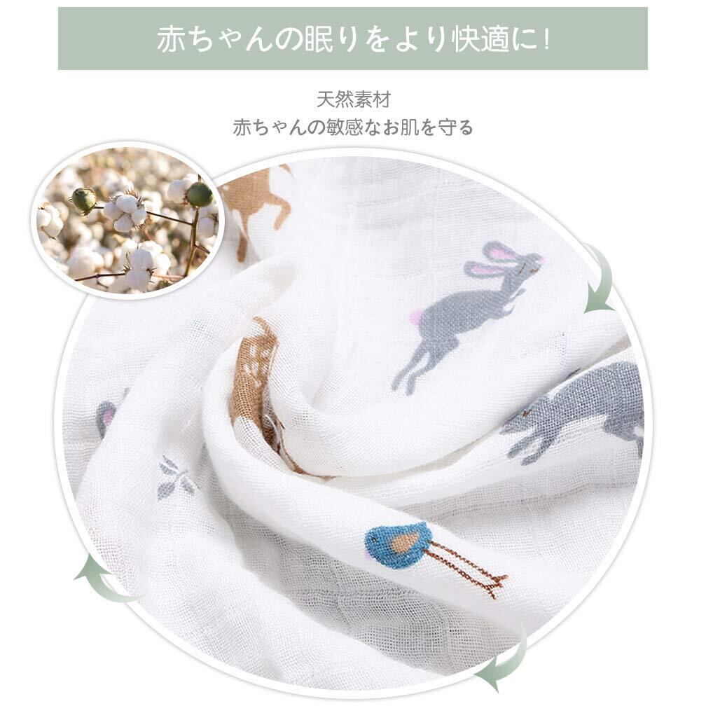 2.「コットン100%」天然コットン100%で製造され、非常に柔らかい肌触りがあります。ダブルガーゼで空気が通じるし、吸水性も優れています。赤ちゃんの敏感なお肌を守ります。ちょうどよい厚みで、暑いときはは涼しく寒い時は暖かくなって、一年を通じて使用できます。