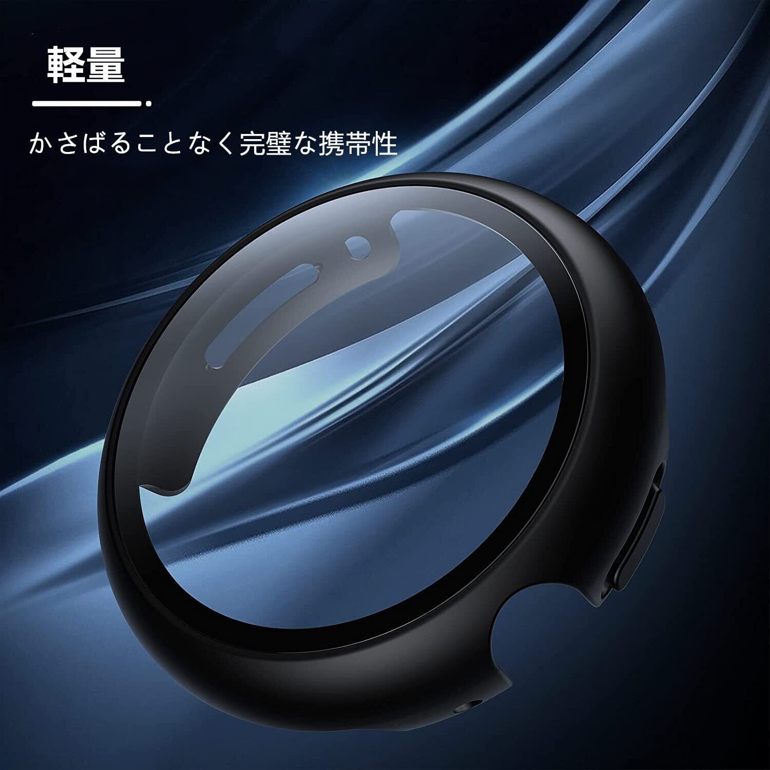 Google Pixel Watch 2/Pixel Watch 1 用 ケース 保護 ガラスフィルム 一体型 PC+TPE材質 二重構造 全面保護 超薄型 高耐久 装着簡単 耐衝撃 対応 Google Pixel Watch 2/1保護ケース 高透過率 指紋防止 傷防止 グーグルピクセルウォッチ カバー (黒)