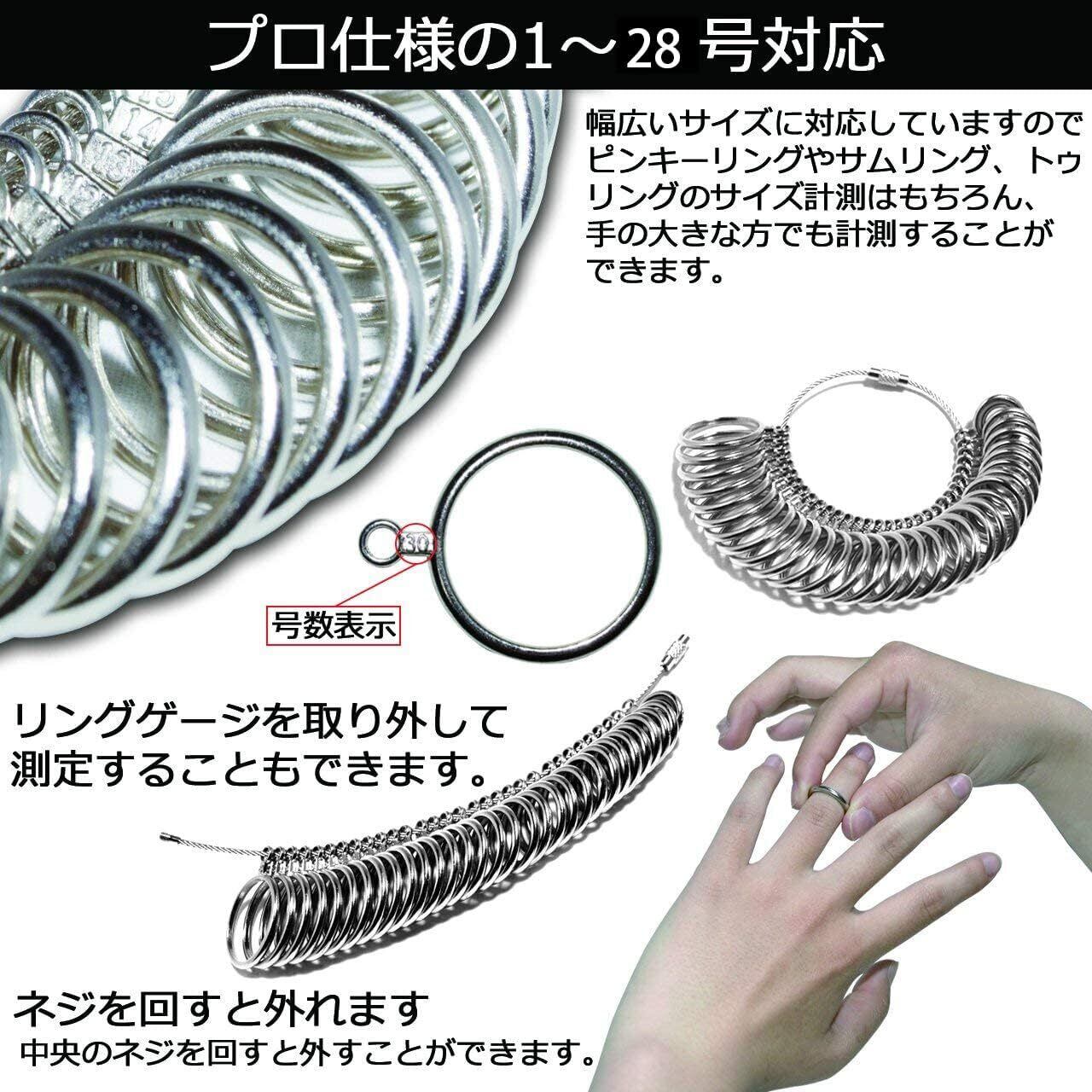 【リングの管理がしやすい】:リングゲージを円環で大きさ順にまとめています。そのため、リングの種類が多くて管理がしづらいという点に応えています。自分の指のサイズにあるリングを見つけやすく、そのままはめることができるのがうれしい点です。