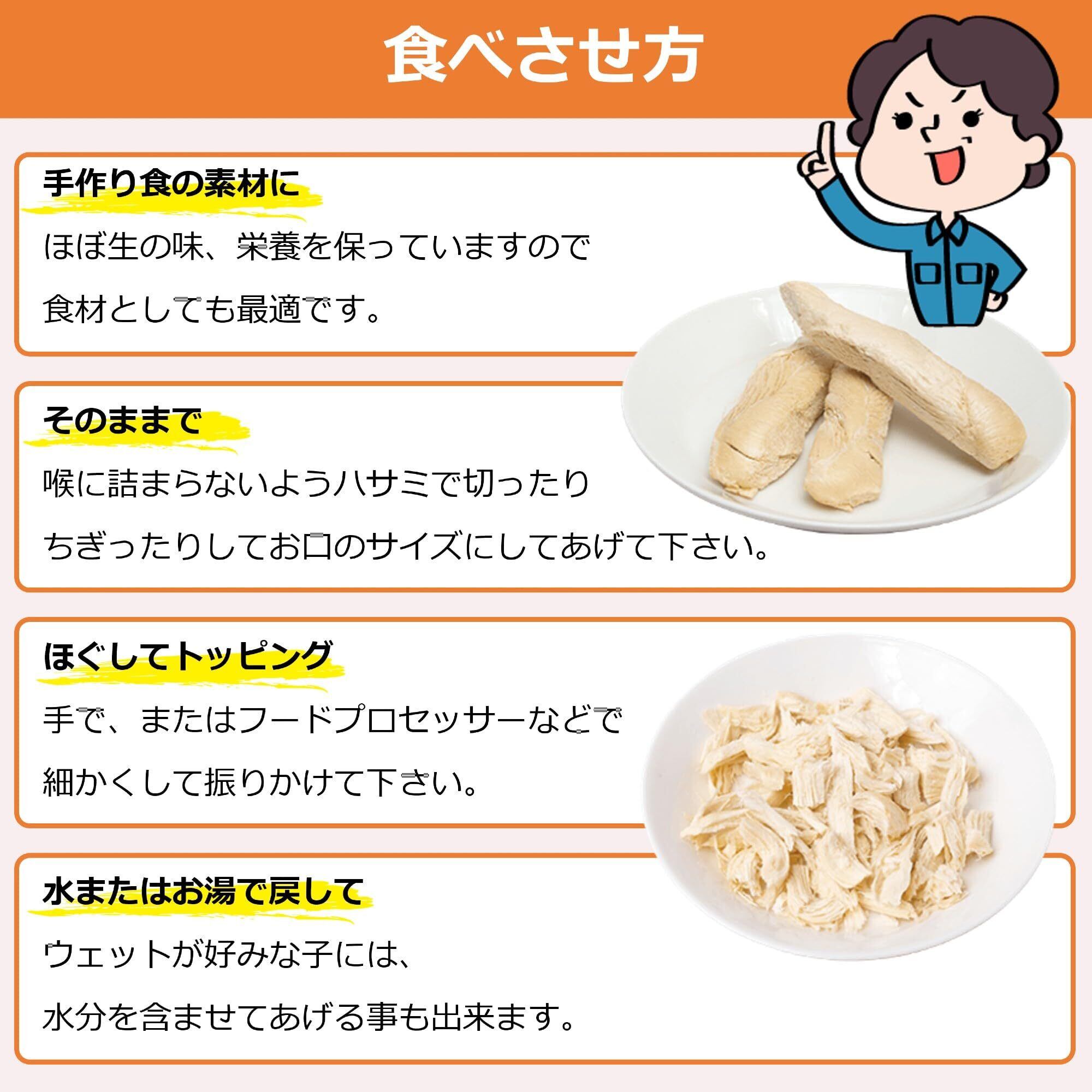 厳選された国産素材を使用しそのままの美味しさと栄養を残すことを目標としています。また、我々人間が食べれない素材は一切使用しません。 そのこだわりがペットたちの食いつきに現れます。 ママクックのフリーズドライは、その特徴を生かした色々な食べ方が出来ます。 ぜひ、愛犬・愛猫の好みを見つけて下さい。