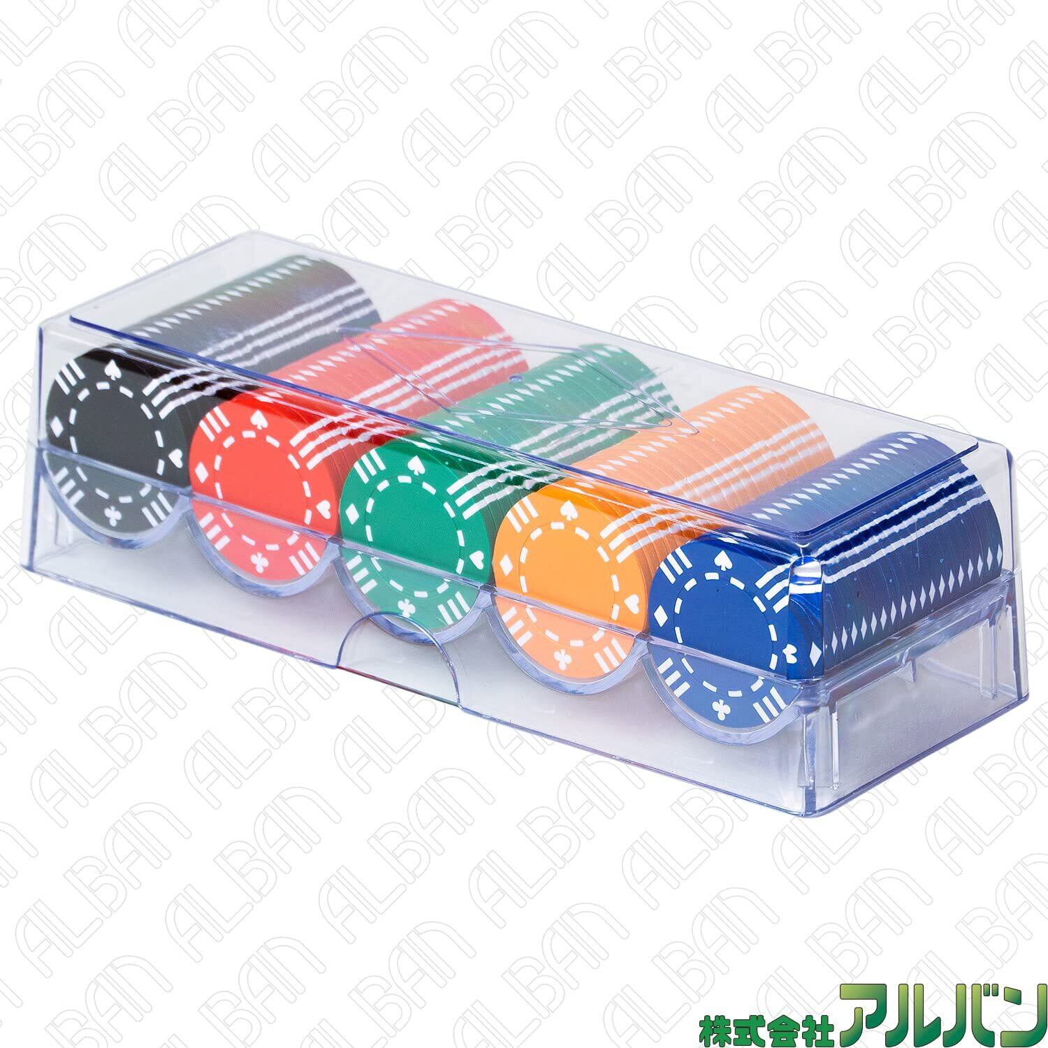 アルバン本格カジノチップ/直径 : 40mm / 厚み : 3.3mm / 重量 : 8g / 5色(各色20枚、計100枚セット)