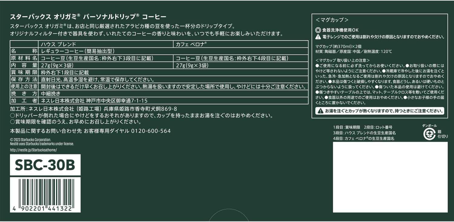 スターバックス オリガミwithマグカップ ギフト SBC-30B,レギュラー コーヒー,ドリップ