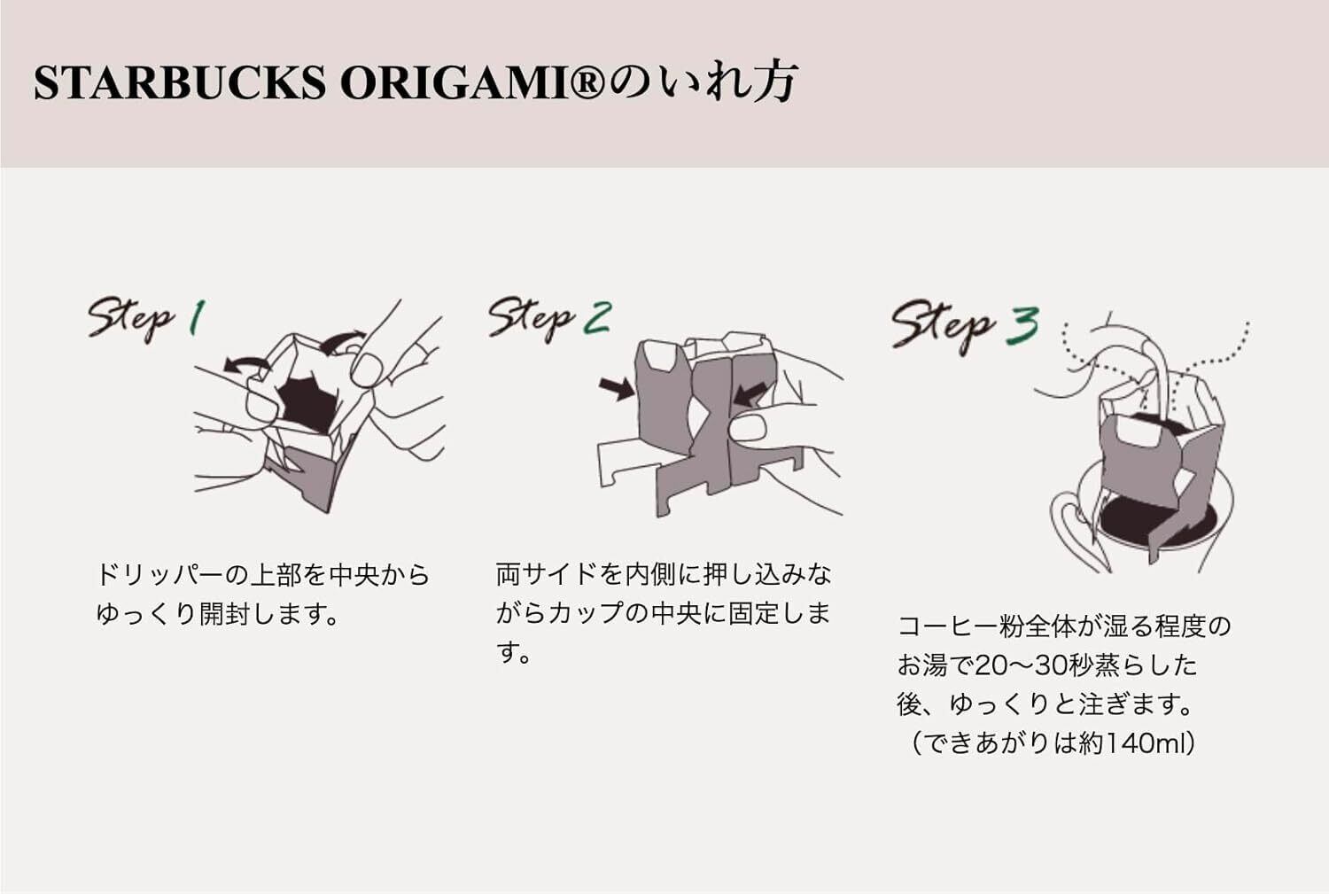 スターバックス オリガミ」は、最適な豆の挽き具合や分量を徹底的に追求し、香り豊かなコーヒーを特別な器具を使うことなく手軽に味わえるドリップタイプのコーヒーです。オリジナルフィルター付きですので、器具が必要ありません。