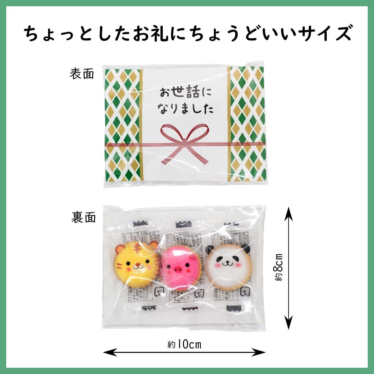 アニマル柄がプリントされた個包装パッケージに、砂糖をかけたクラッカーが入ったセットです。アニマル柄の組み合わせはランダムです。